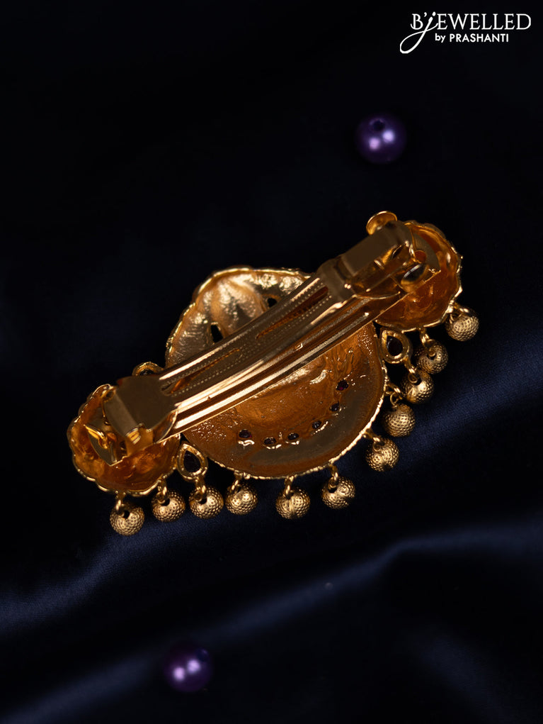 Antique hair clip medium size lakshmi design with kemp stones and golden beads hanging