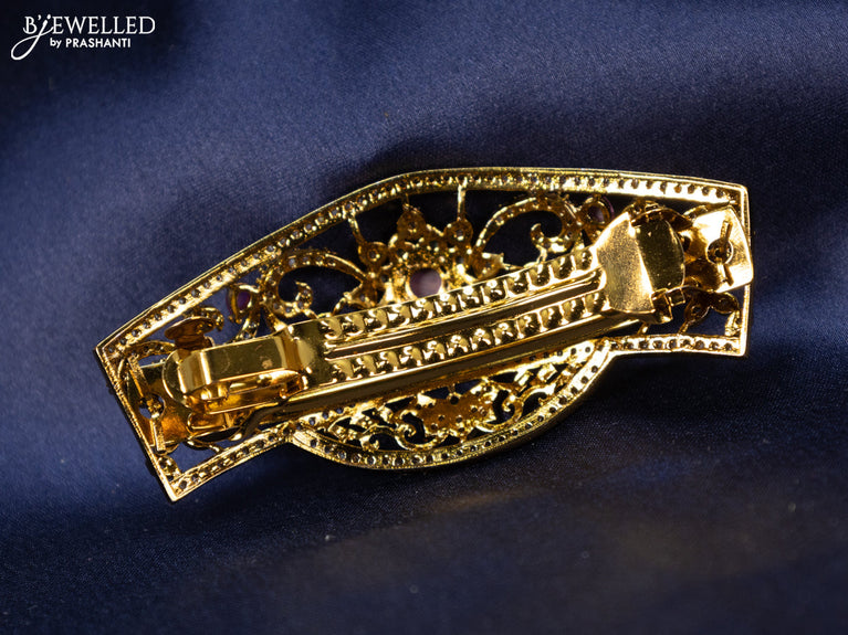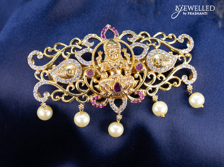 Antique hair clip small size lakshmi design with kemp & cz stones pearl hangings