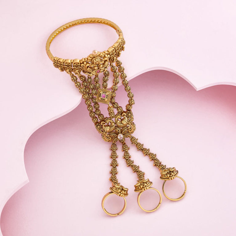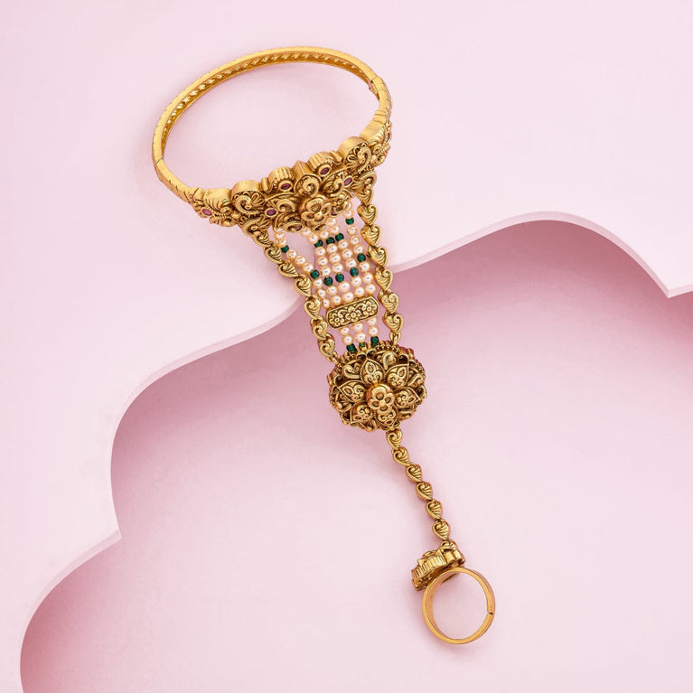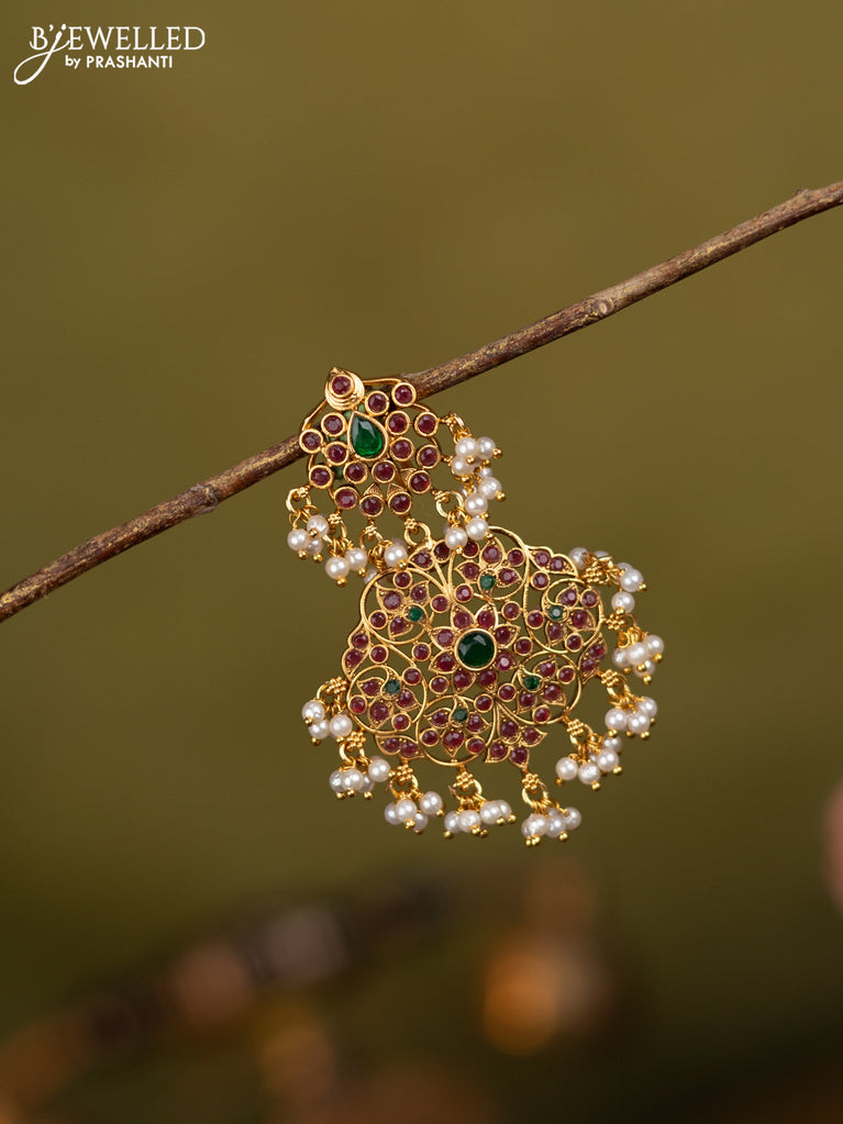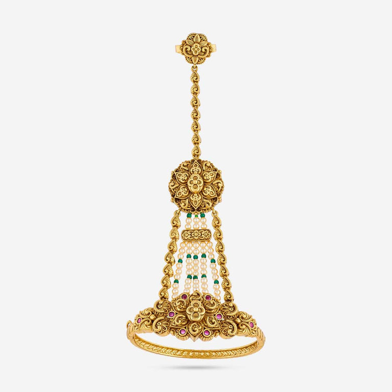 Antique haram flower design with kemp stones and pearl beads hanging