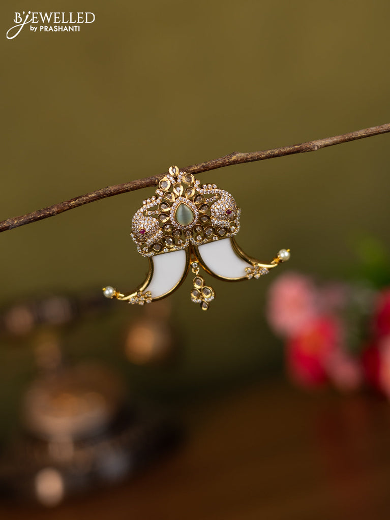 Antique hair clip peacock design with kemp & cz stones and pearl hangings