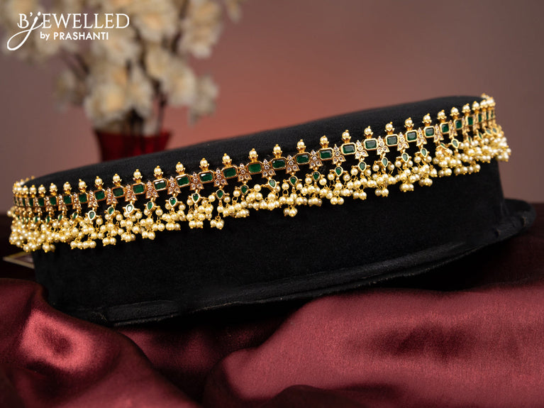Antique hip chain with emerald & kundan stones and pearl hangings