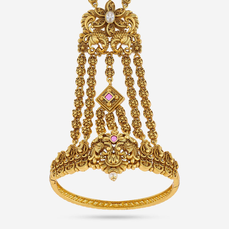 Antique jada billai floral design with kemp stones and pearl hangings