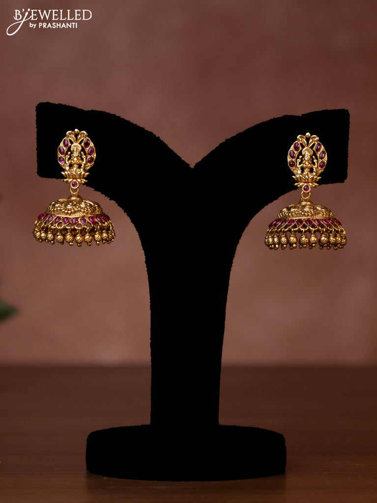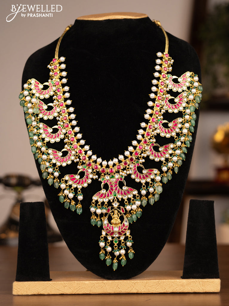 Antique necklace lakshmi & peacock design with pink kemp & cz stones and pearl hangings