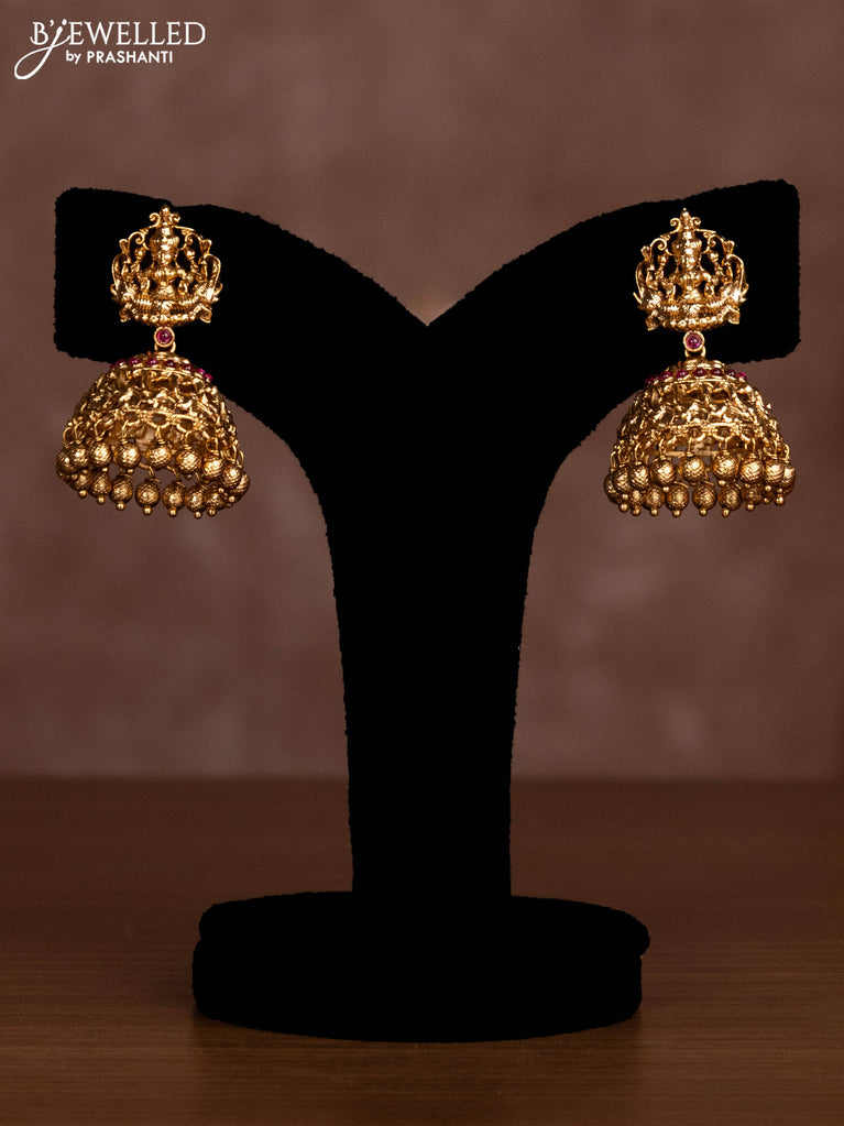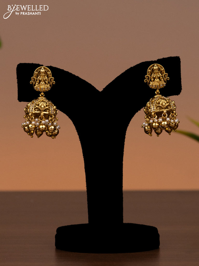 Antique necklace lakshmi design with cz stones and golden beads hanging