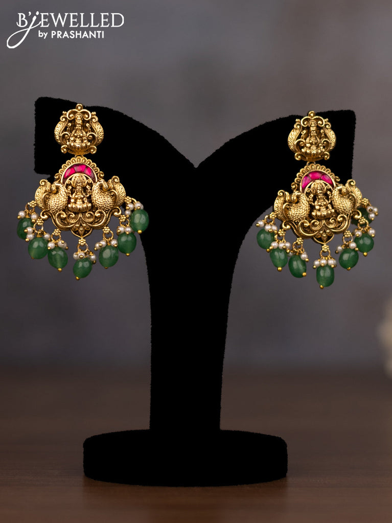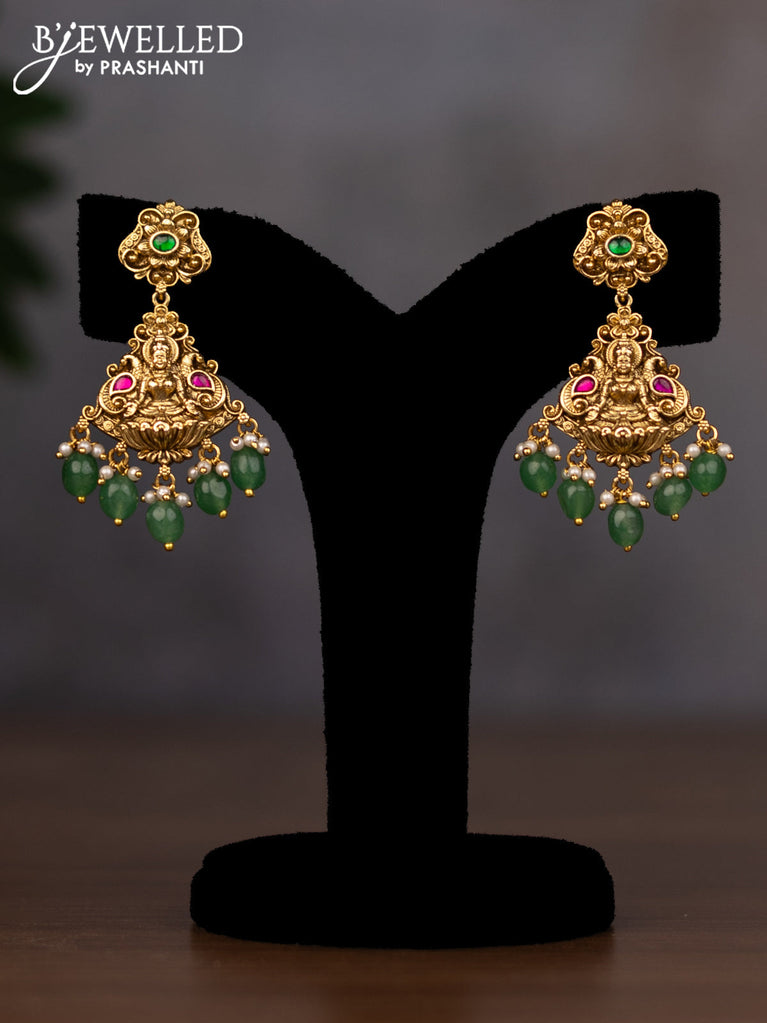 Antique necklace lakshmi design with kemp stones and golden beads hanging