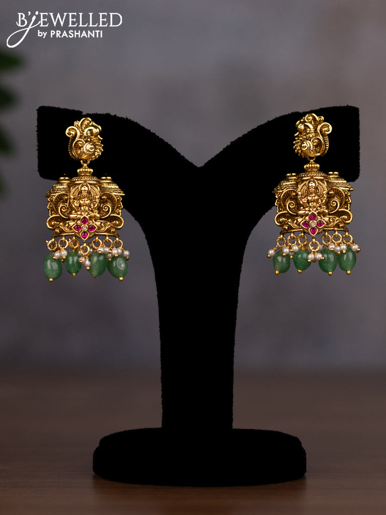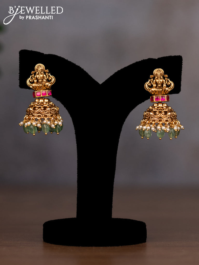Antique necklace lakshmi design with jadau stones and green beads hanging
