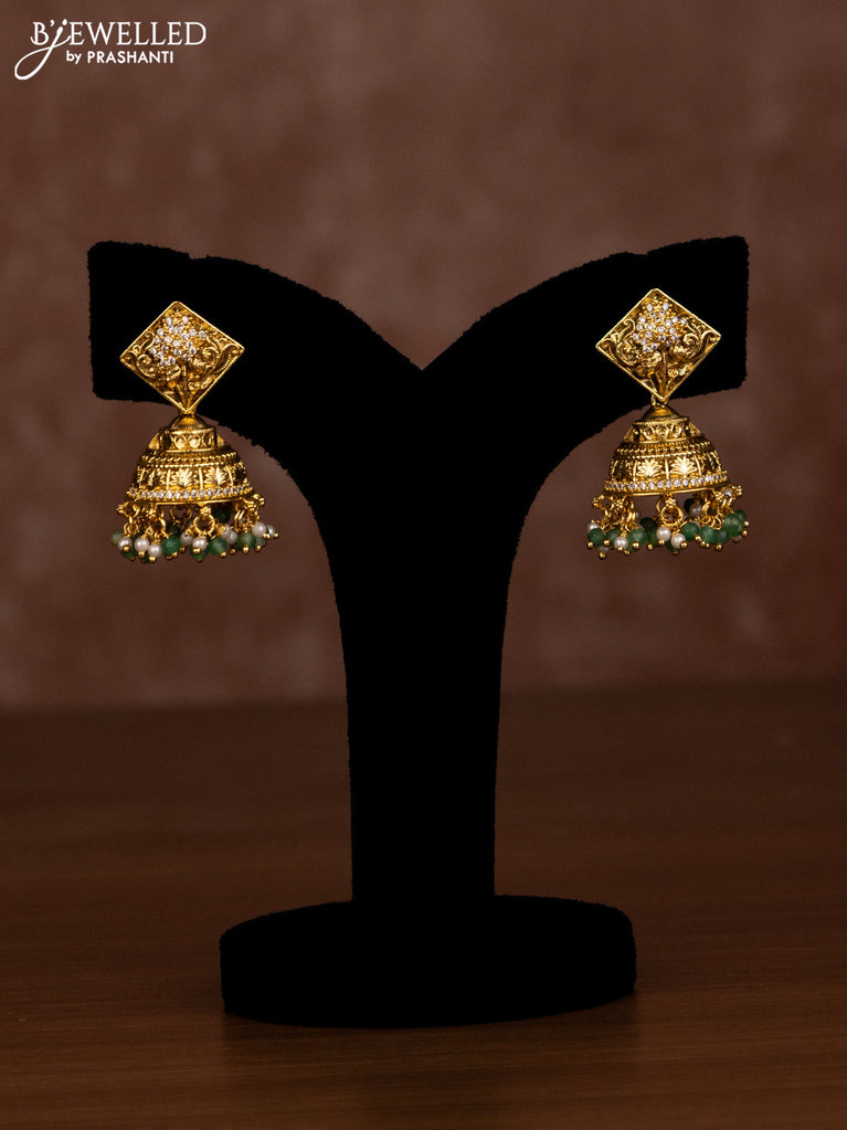 Antique necklace lakshmi design with emerald & cz stones and golden beads hangings