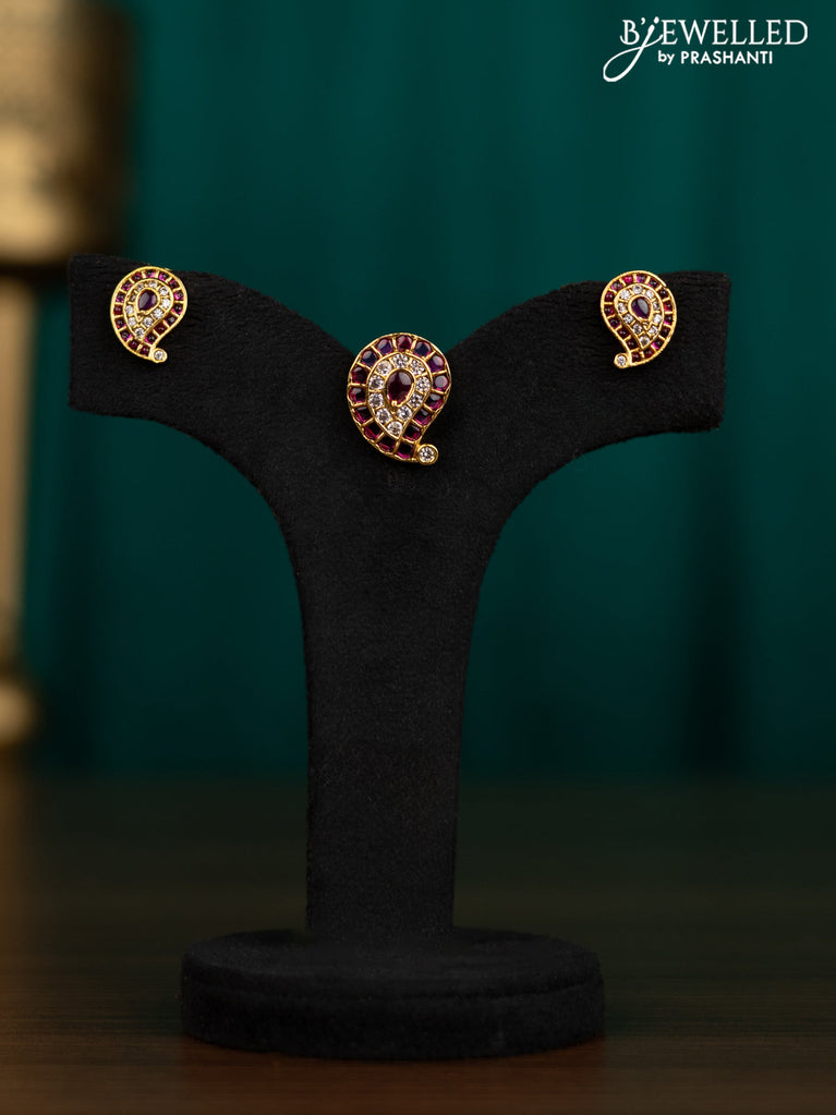Antique pendant set manga pattern with pink kemp and cz stones