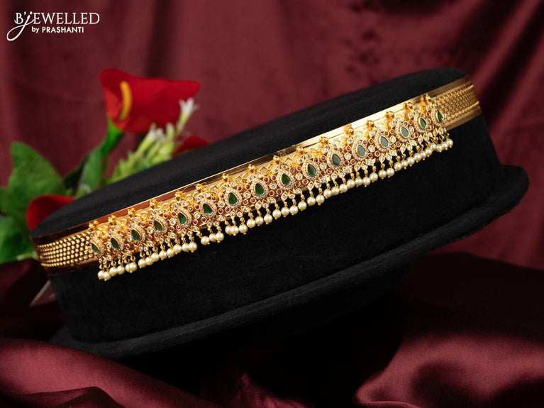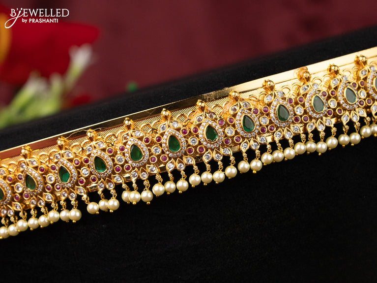Antique self embosse hip belt with kemp & cz stones and pearl hangings