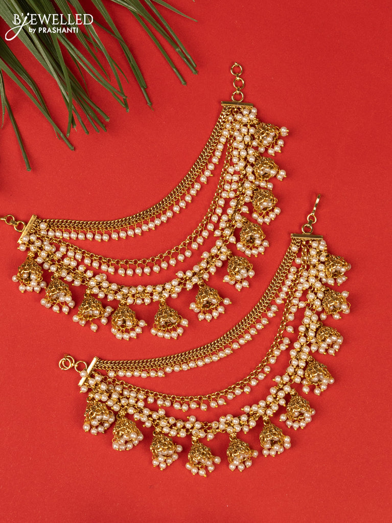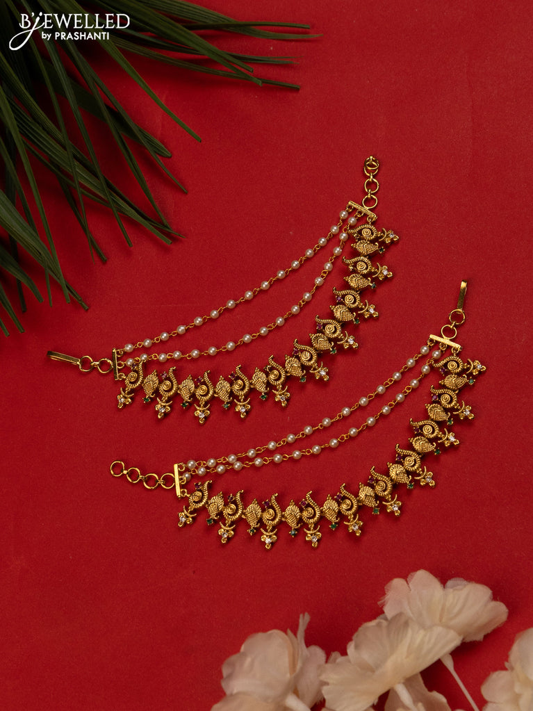 Antique triple layer mattal with maanga pattern kemp cz stones and pearls