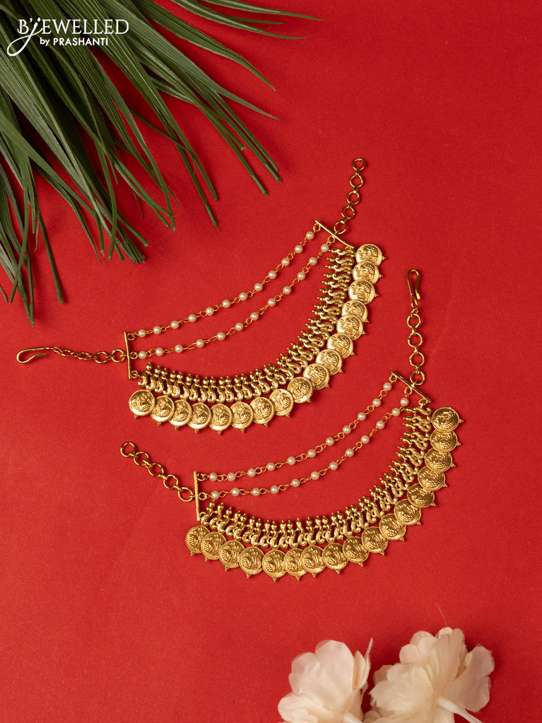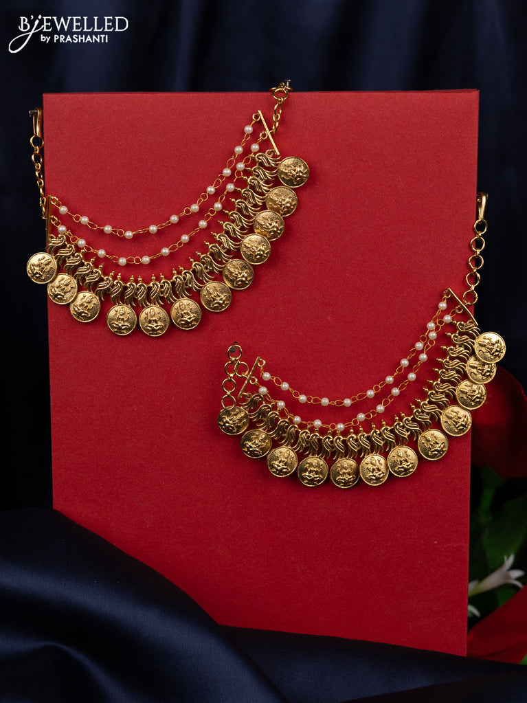 Antique triple layer mattal with lakshmi design kemp stones and pearls
