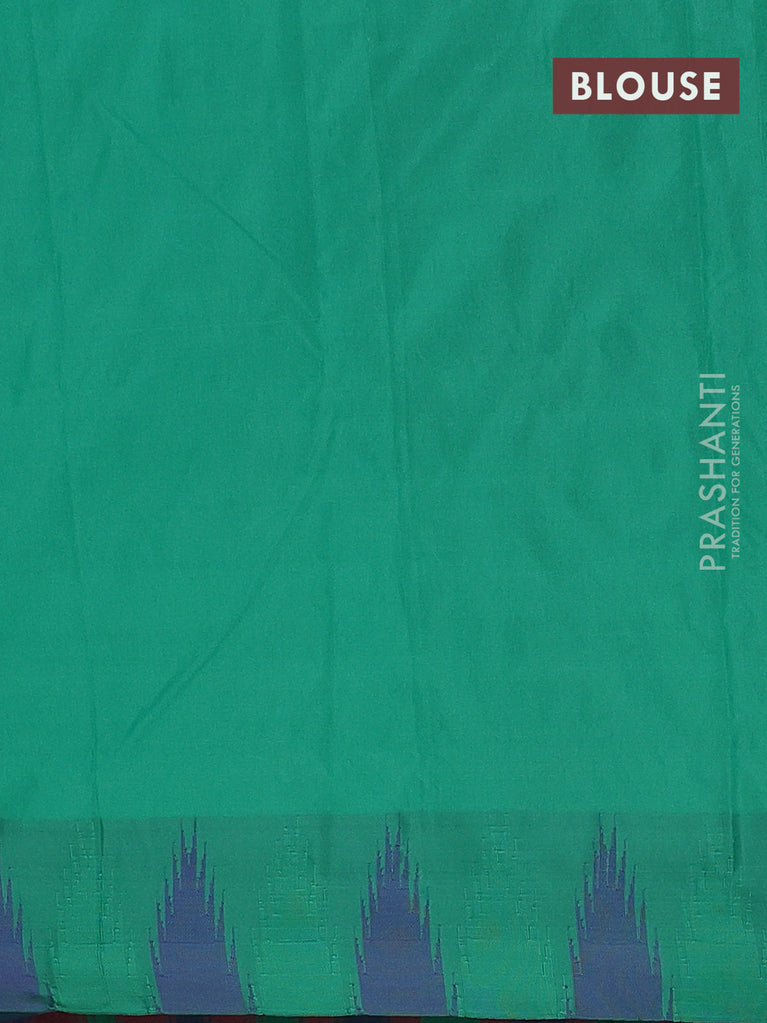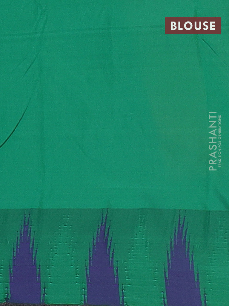 Arani semi silk saree magenta pink and green blue with plain body and temple design border