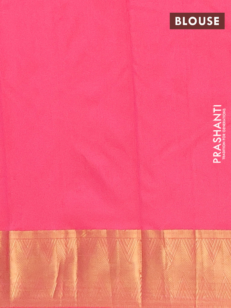 Arani semi silk saree pastel pink and green with plain body and temple design border