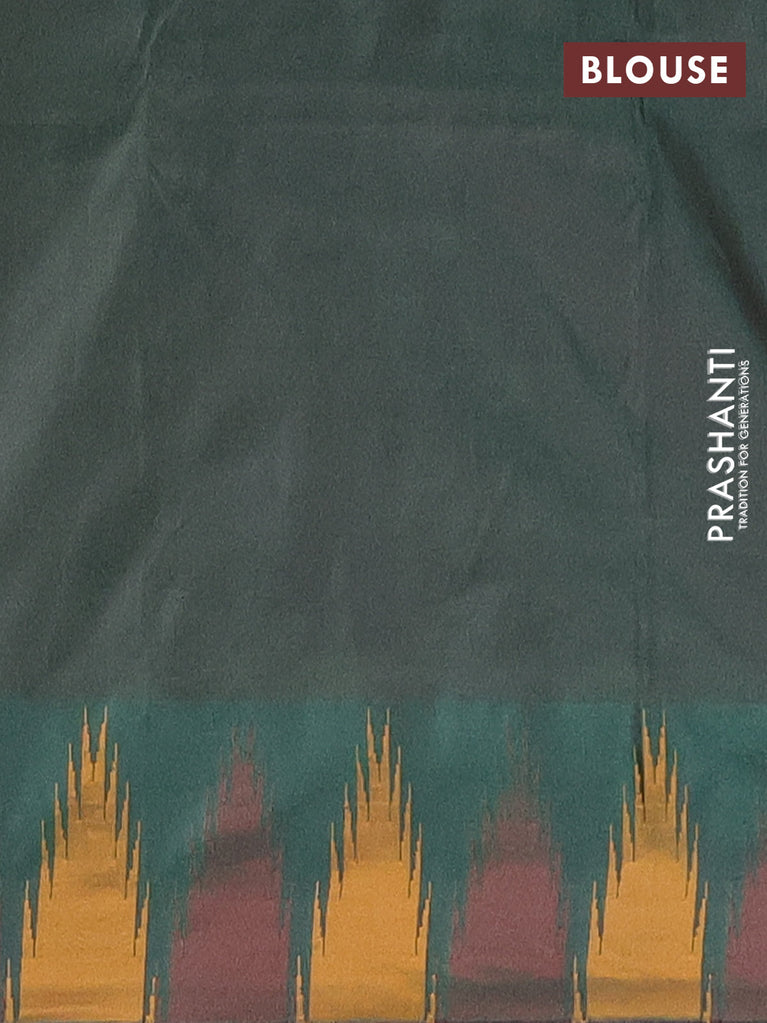 Arani semi silk saree pastel green shade and mustard yellow maroon with plain body and temple design border