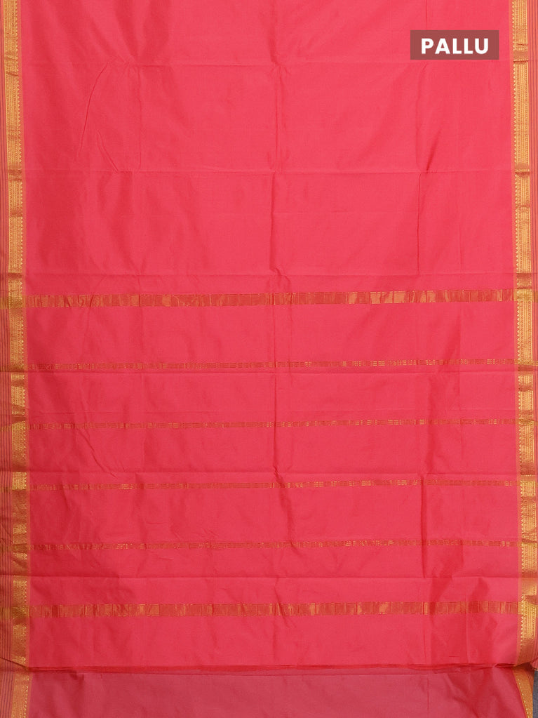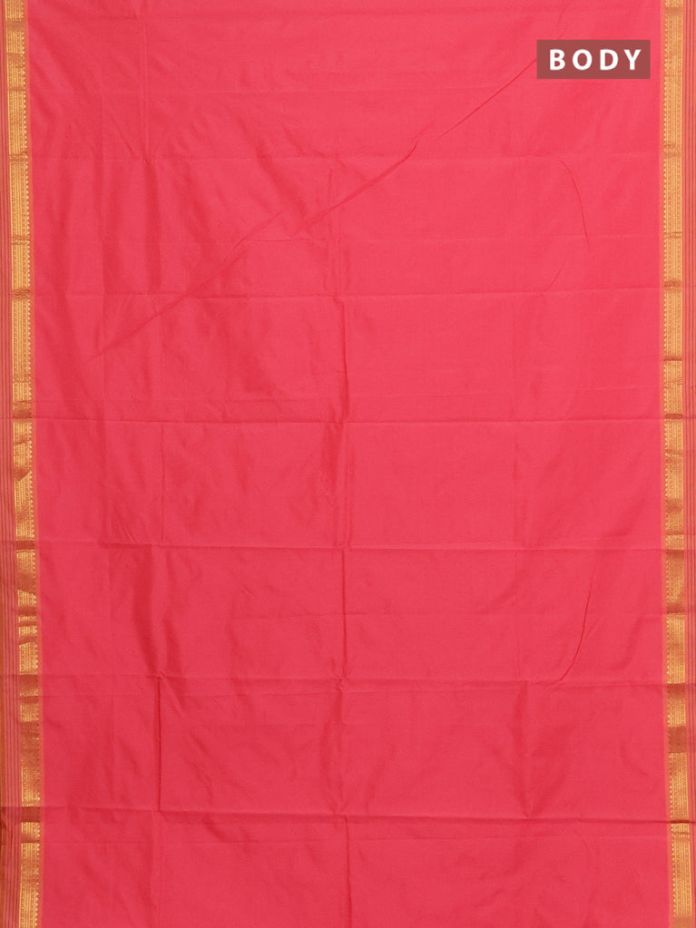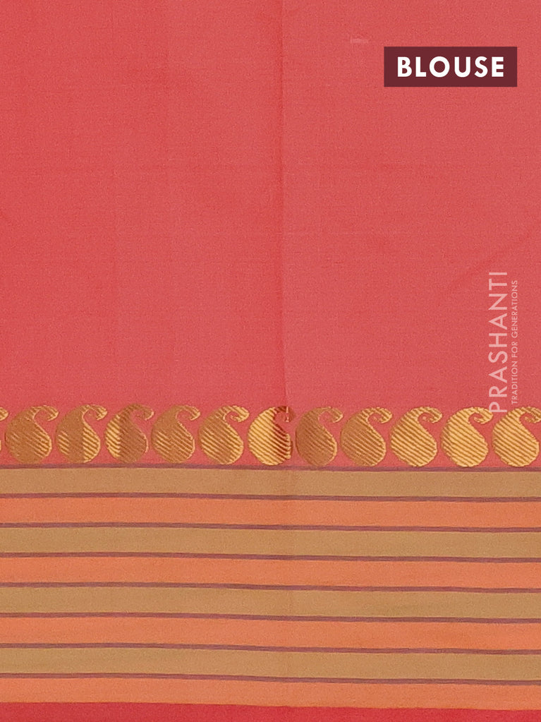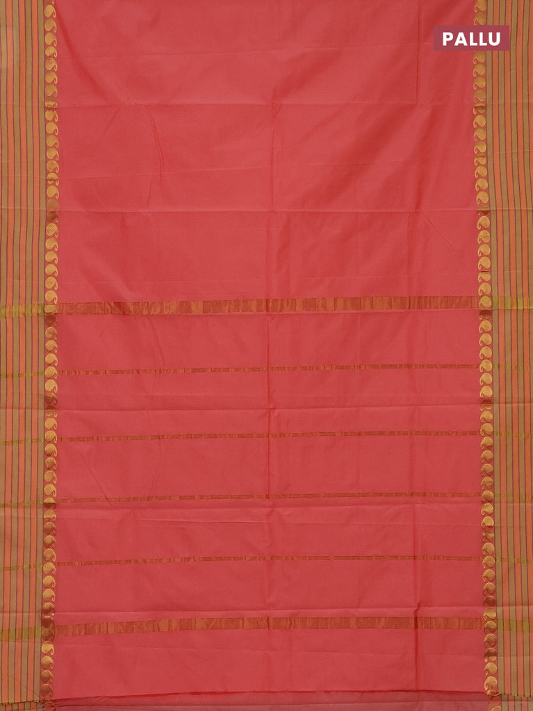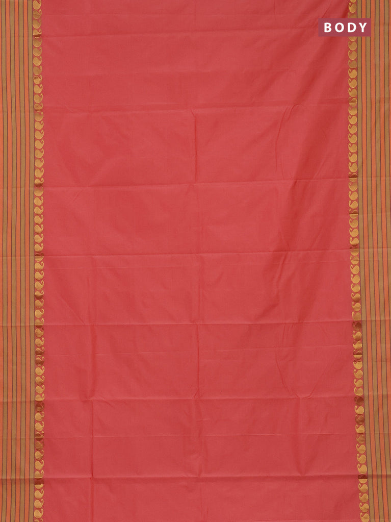 Arani semi silk saree peach pink with plain body and paisley zari woven simple border