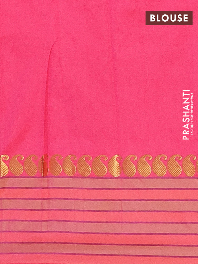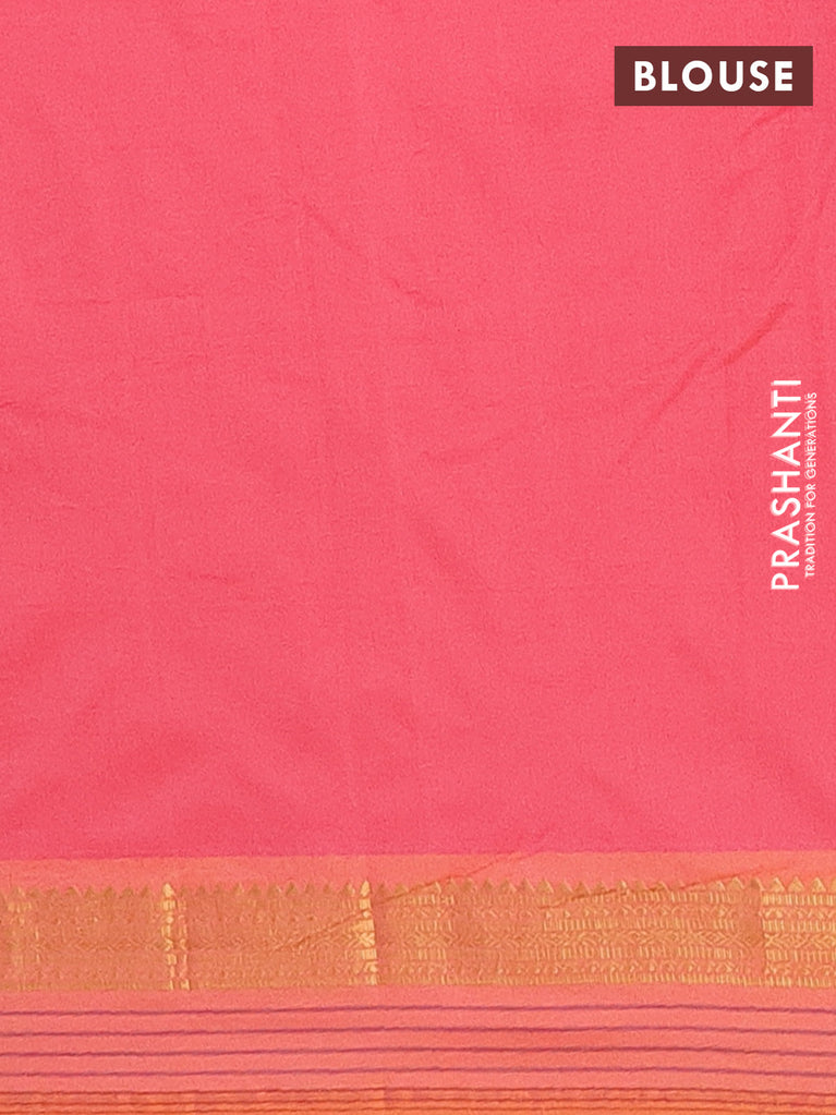 Arani semi silk saree peach pink and violet with allover copper zari weaves and zari woven border