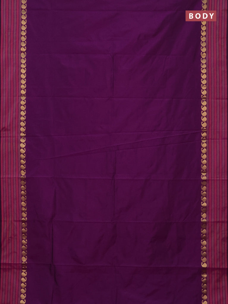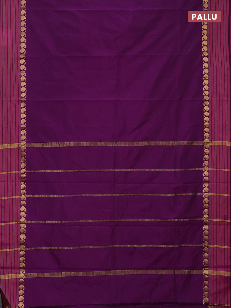 Arani semi silk saree purple and green shade with plain body and paisley zari woven simple border