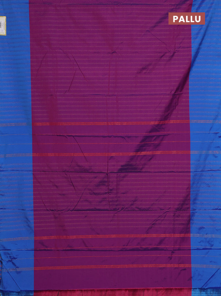 Arani semi silk saree purple and cs blue with allover copper zari weaves and copper zari woven border