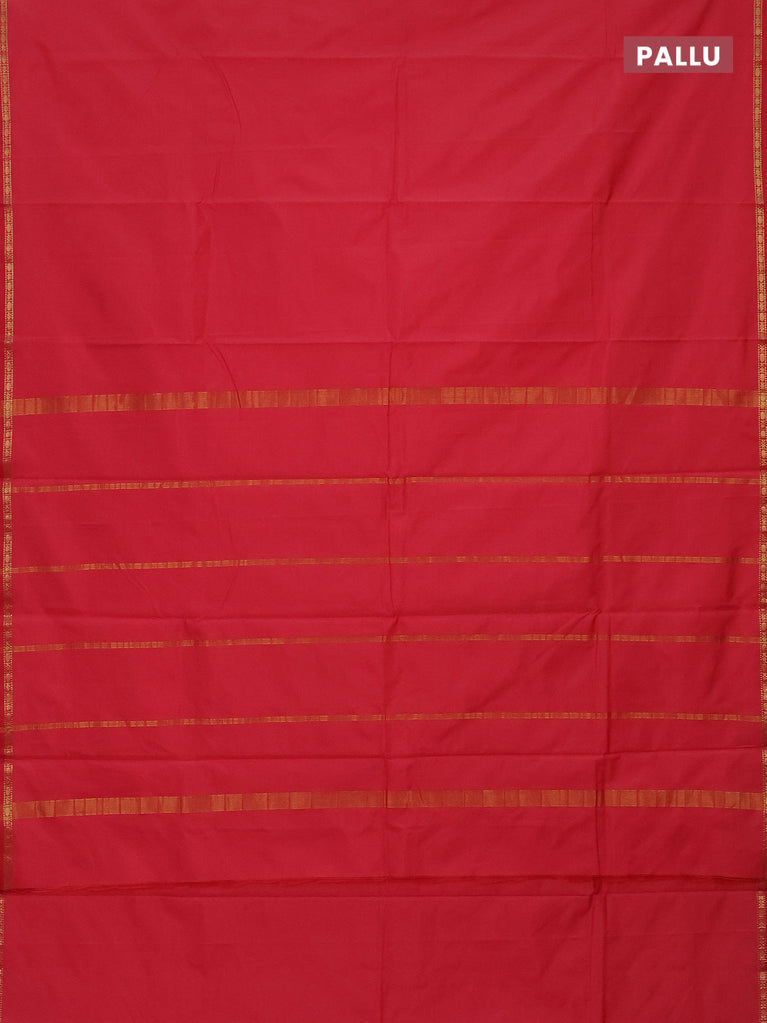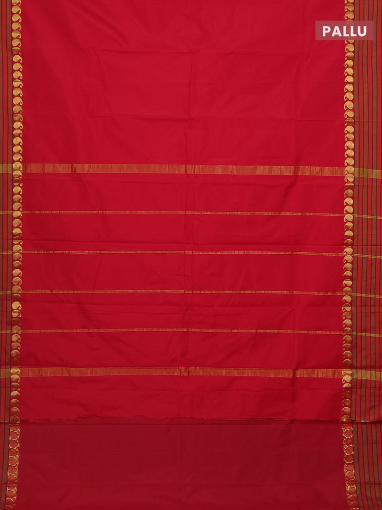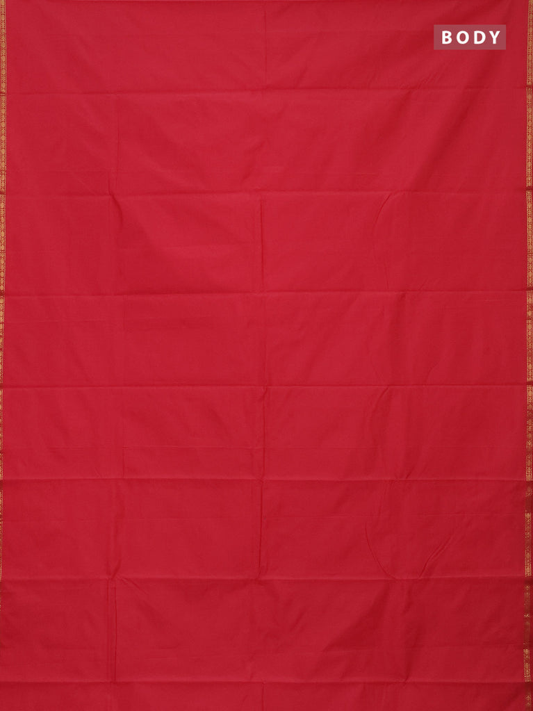 Arani semi silk saree red and light green with plain body and paisley zari woven simple border