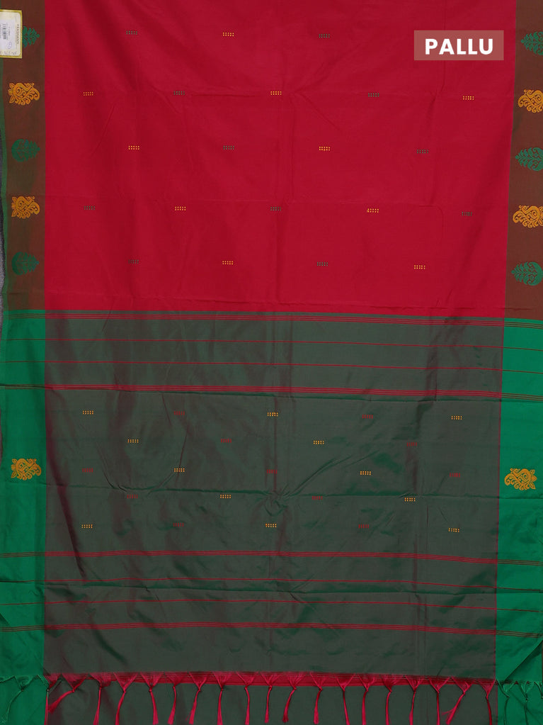 Arani semi silk saree sap green and dual shade of maroon with thread woven buttas and thread woven butta border