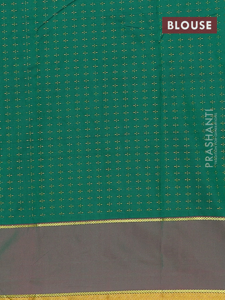 Arani semi silk saree sap green and dark mustard with plain body and zari woven simple border