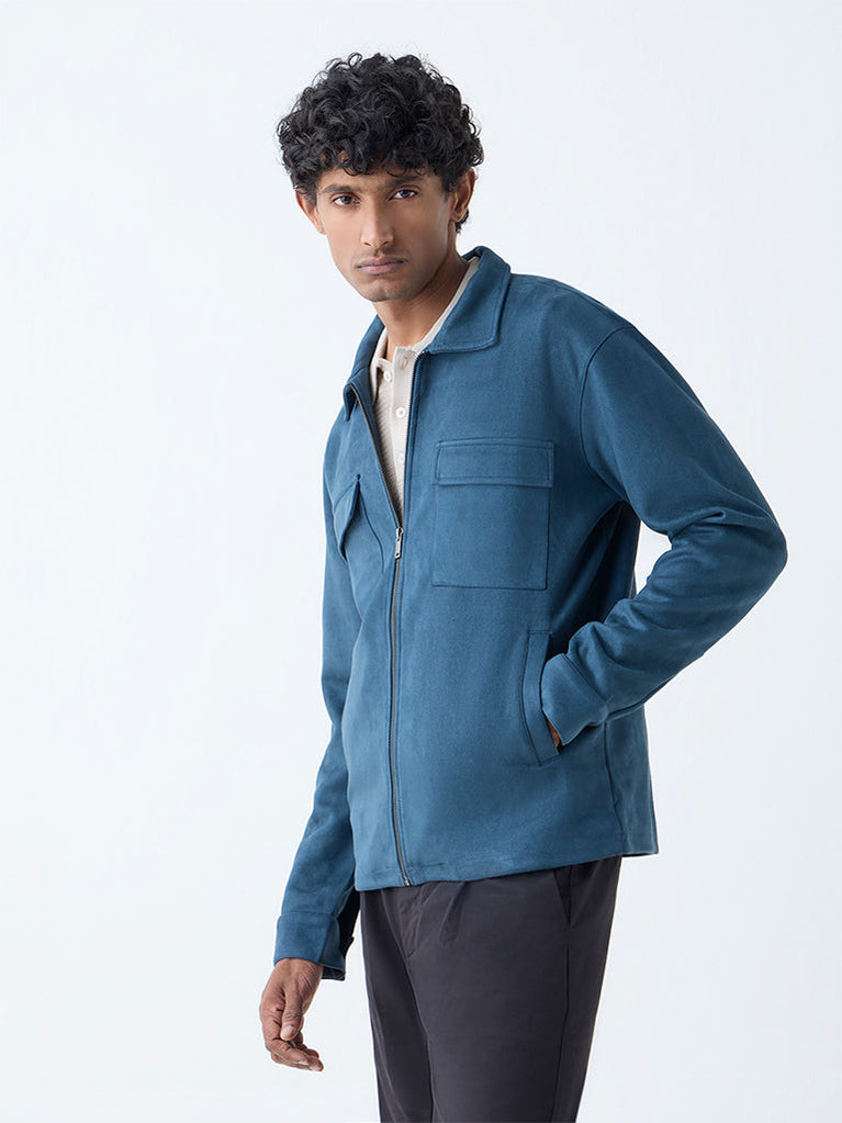 Ascot Teal Solid Relaxed-Fit Suede Jacket