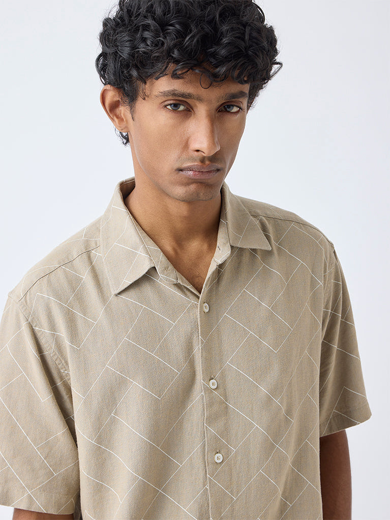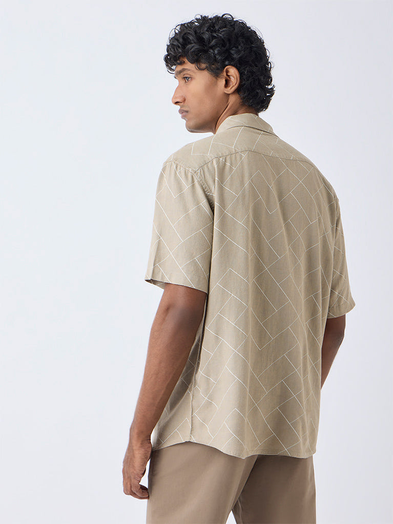 Ascot Taupe Printed Relaxed-Fit Shirt