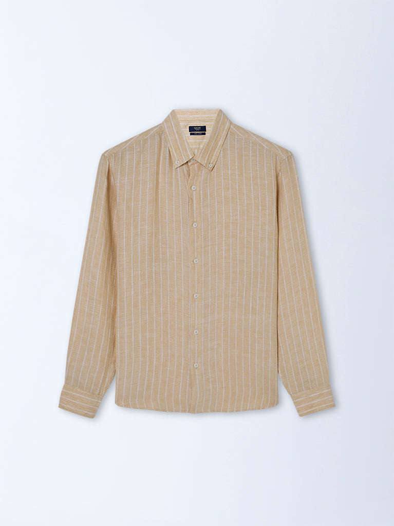 Ascot Yellow Striped Relaxed-Fit Linen Shirt