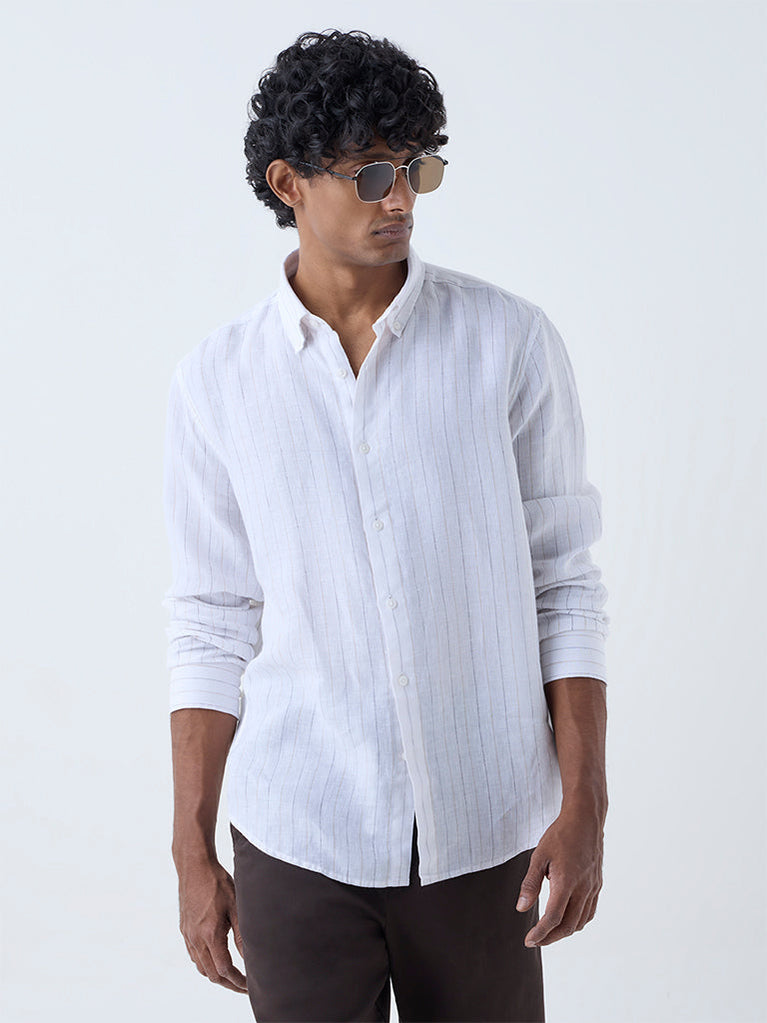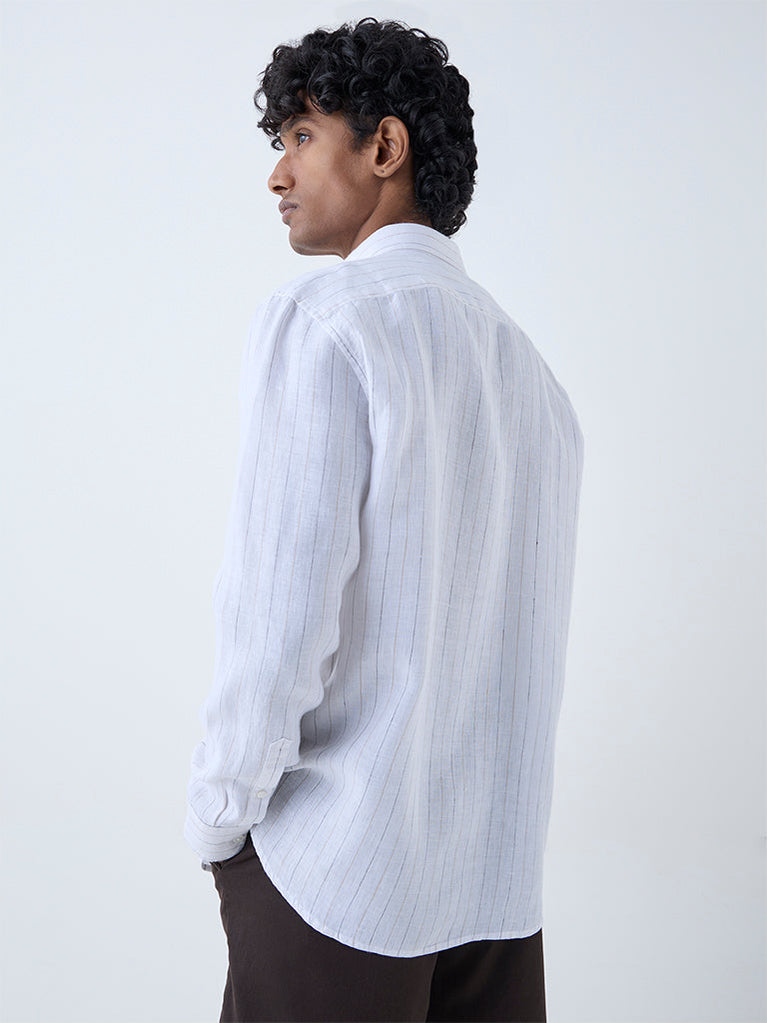 Ascot White Stripe Printed Relaxed-Fit Linen Shirt