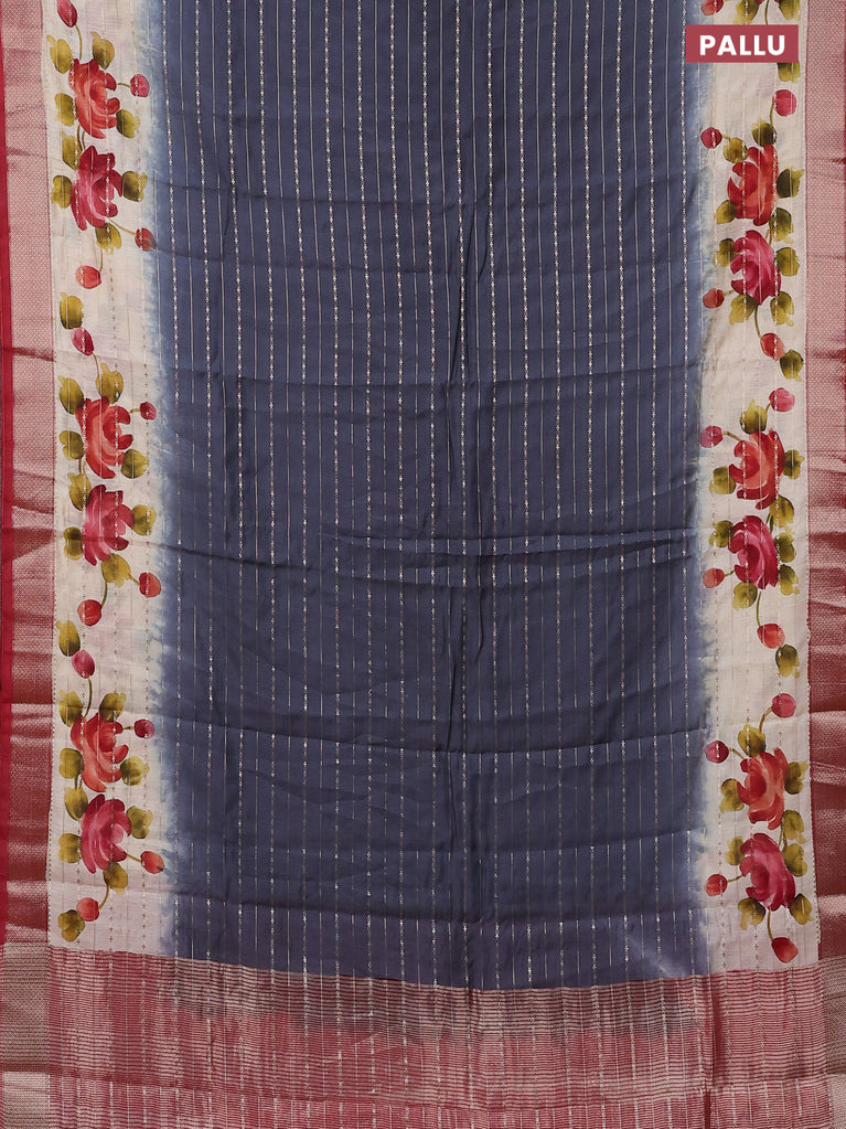 Assam semi silk saree grey and maroon with allover zari weaves and floral printed zari woven border