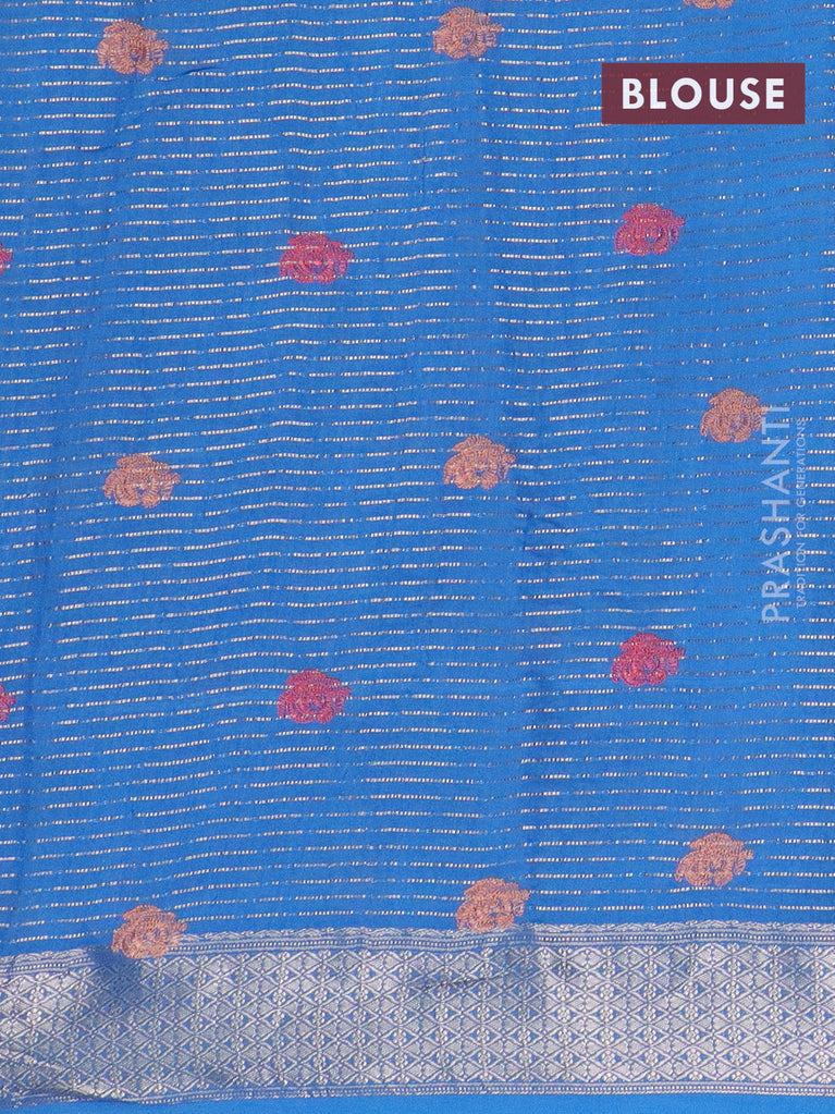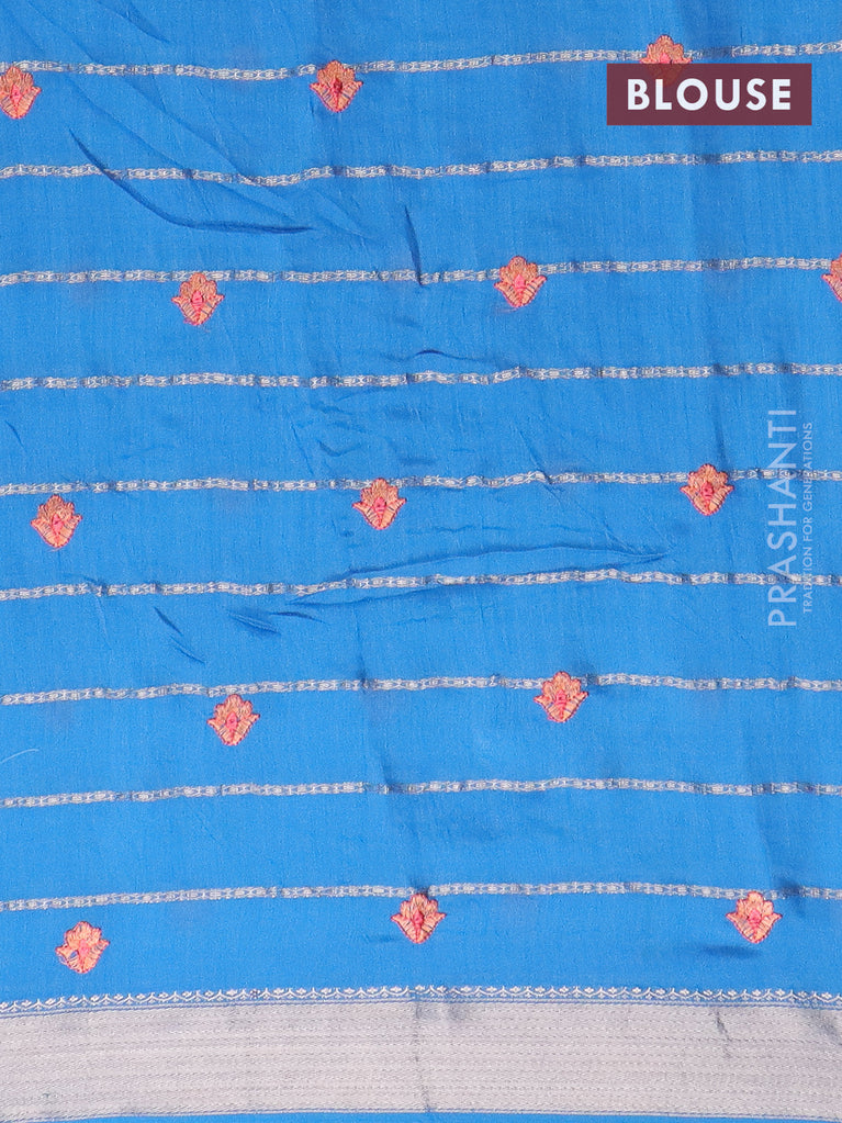 Assam silk saree cs blue with zari buttas & embroidery work and zari woven border