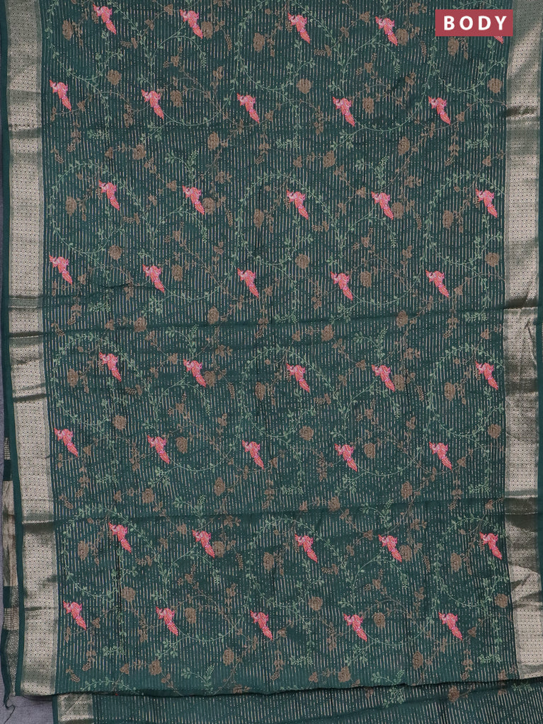 Assam silk saree bottle green with allover zari weaves & floral embroidery work buttas and zari woven border