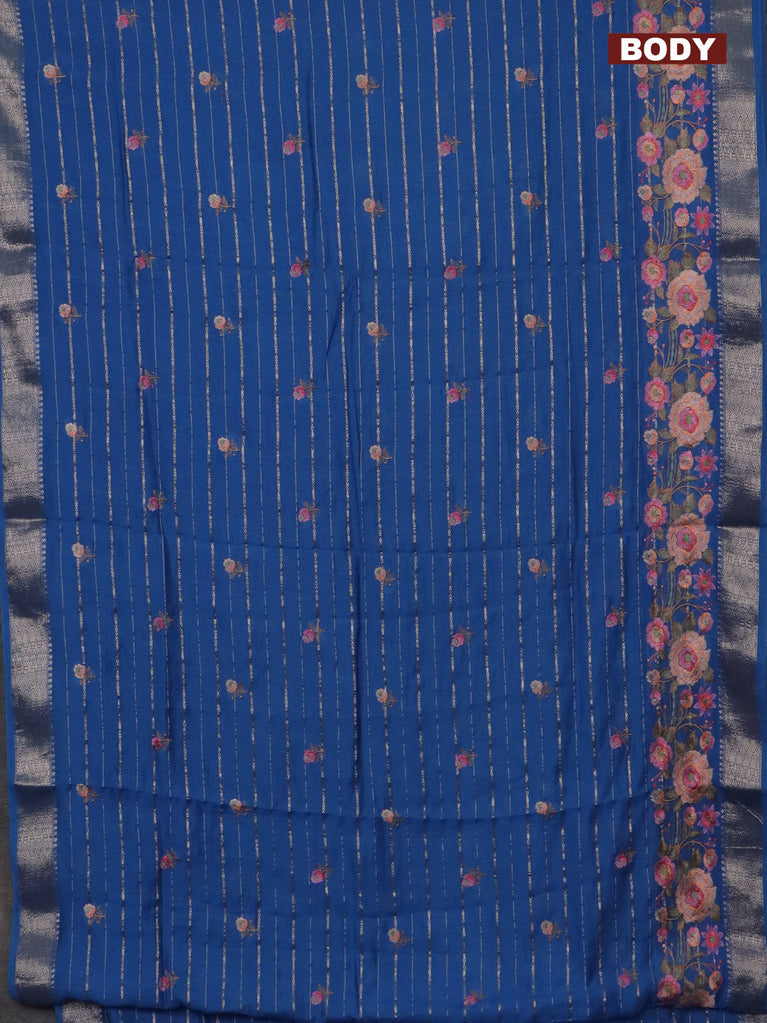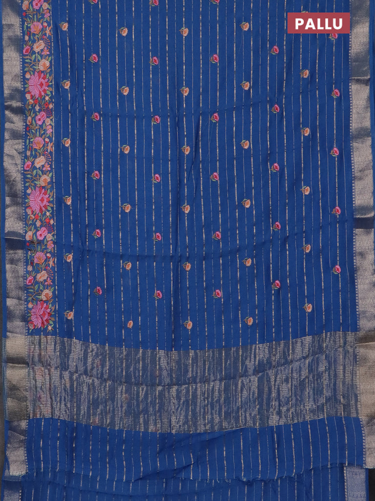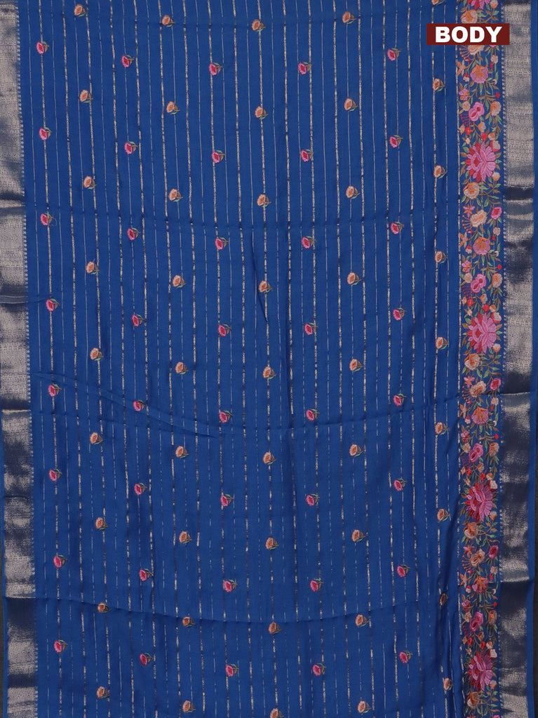 Assam silk saree blue shade with allover zari weaves & floral embroidery work buttas and zari woven border