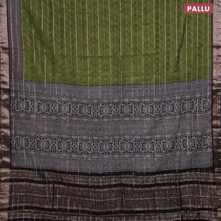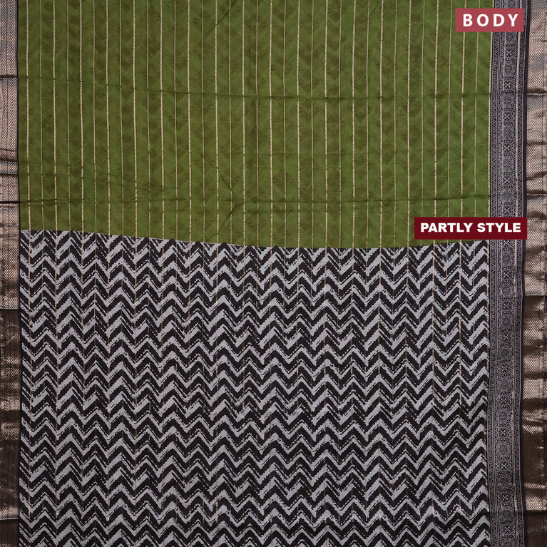 Assam partly silk saree mehendi green and black with digital prints & zari weaves and zari woven border