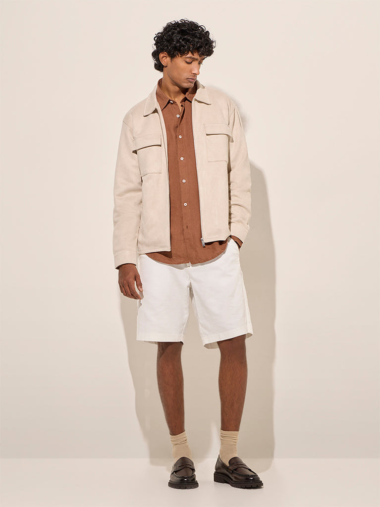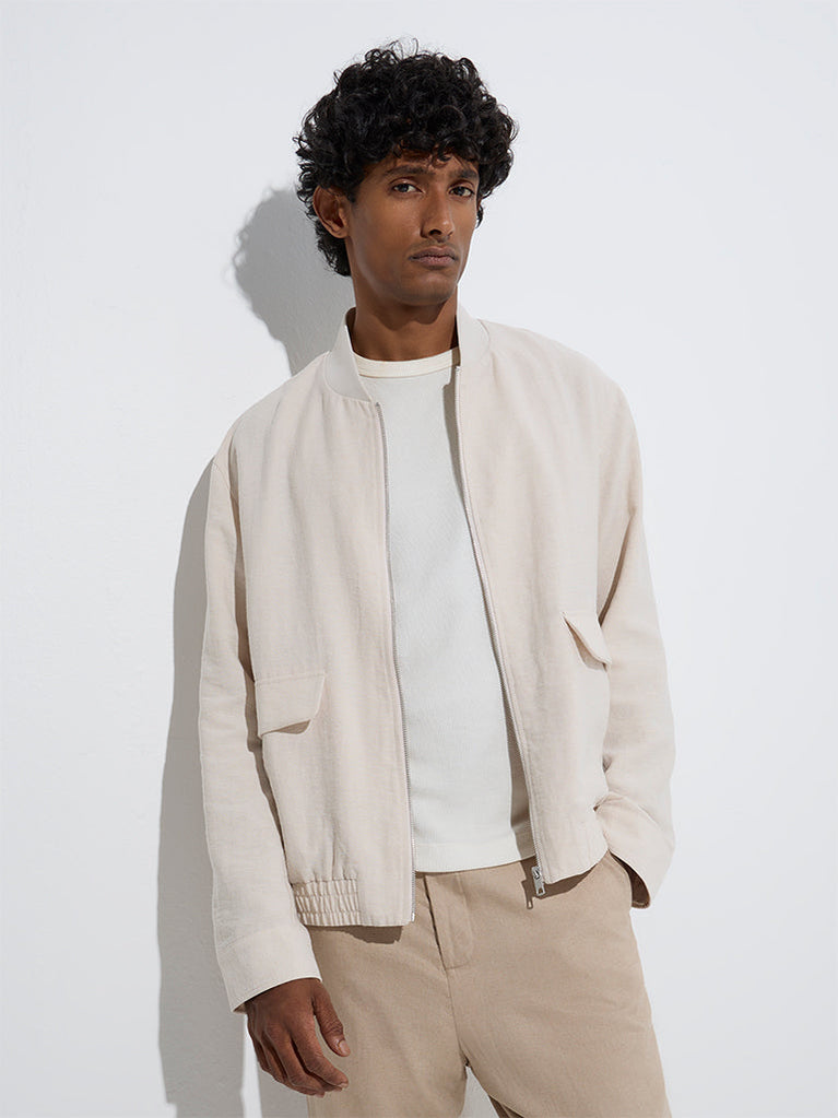 Ascot Beige Knit-Textured Relaxed Fit Jacket