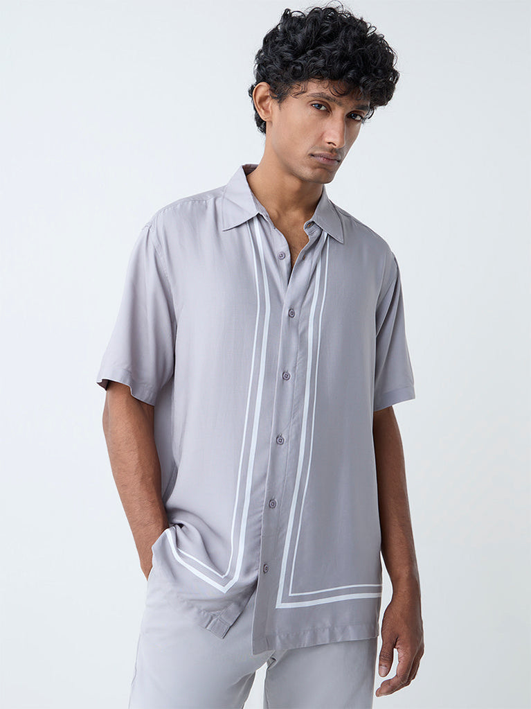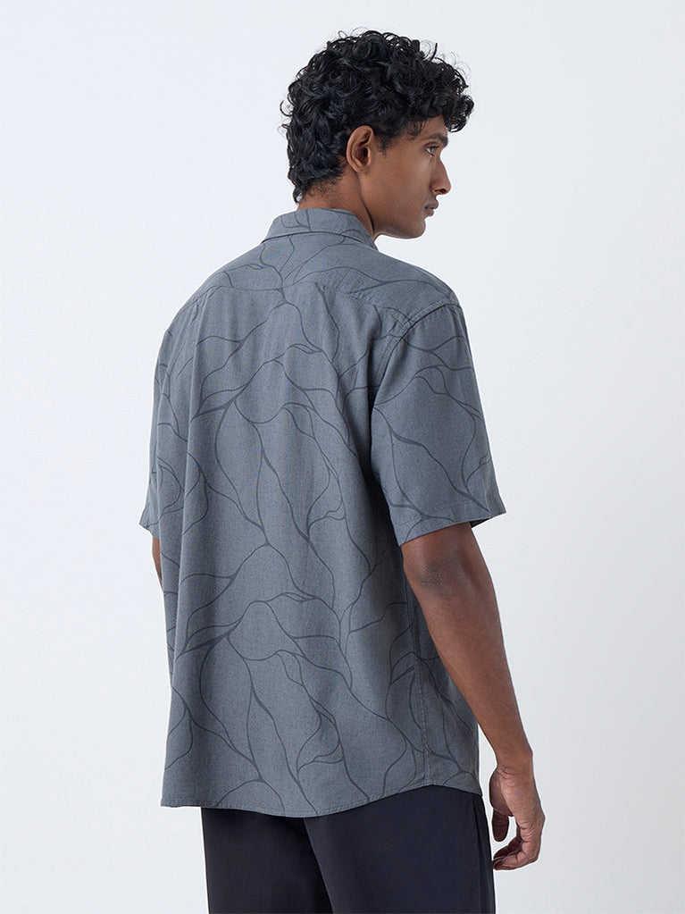 Ascot Grey Abstract Pattern Relaxed-Fit Shirt