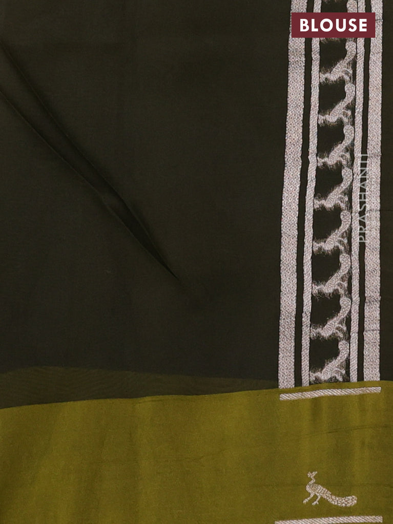 Banarasi katan silk saree mehendi green with allover zari woven brocade weaves and zari woven butta border