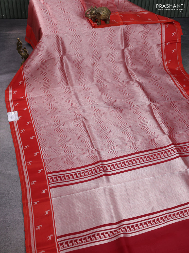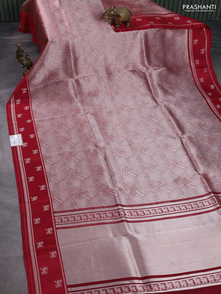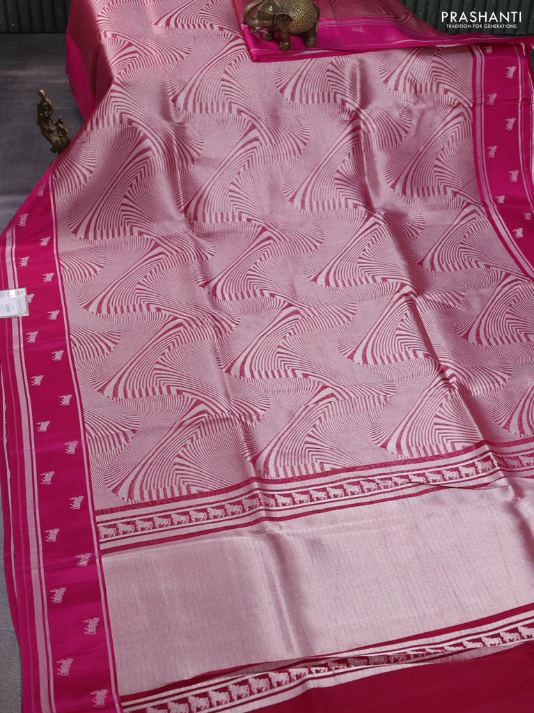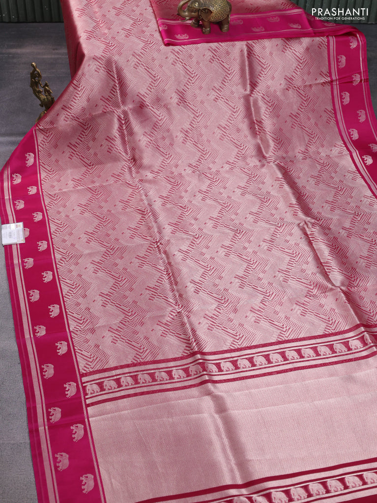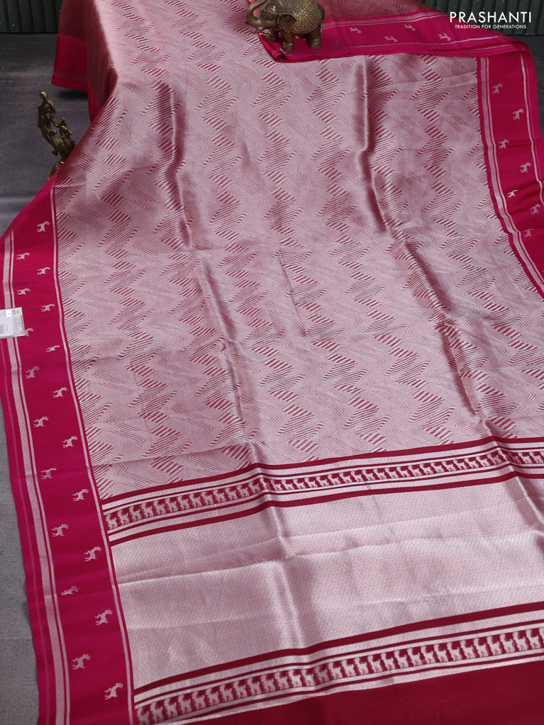 Banarasi katan silk saree pink with allover silver zari woven brocade weaves and zari woven butta border