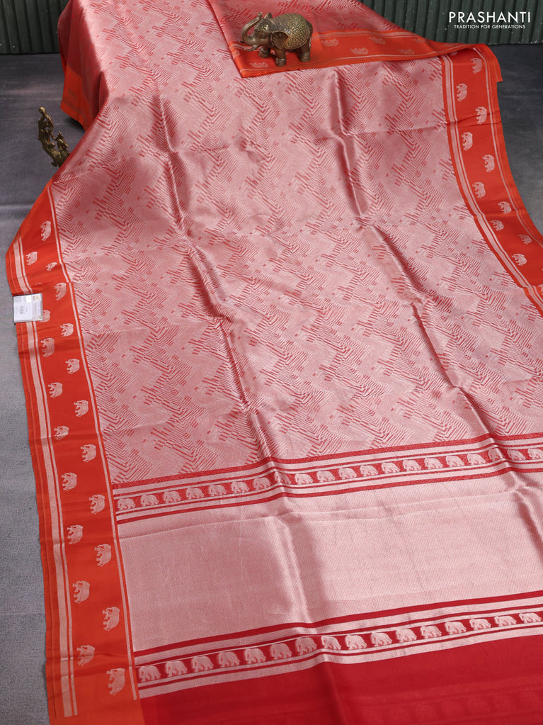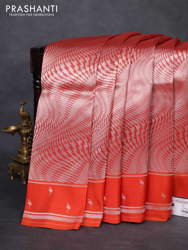 Banarasi katan silk saree orange with allover zari woven brocade weaves and zari woven butta border