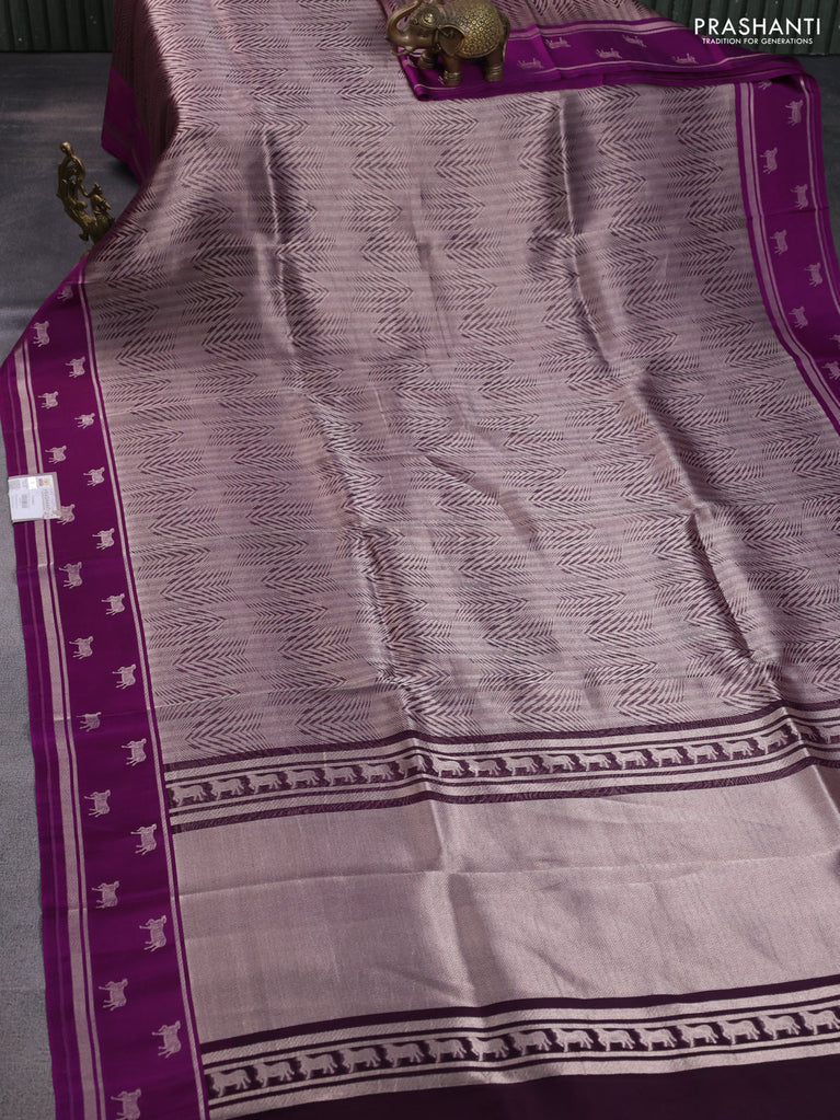 Banarasi katan silk saree purple and grey with zari woven floral buttas and piping border