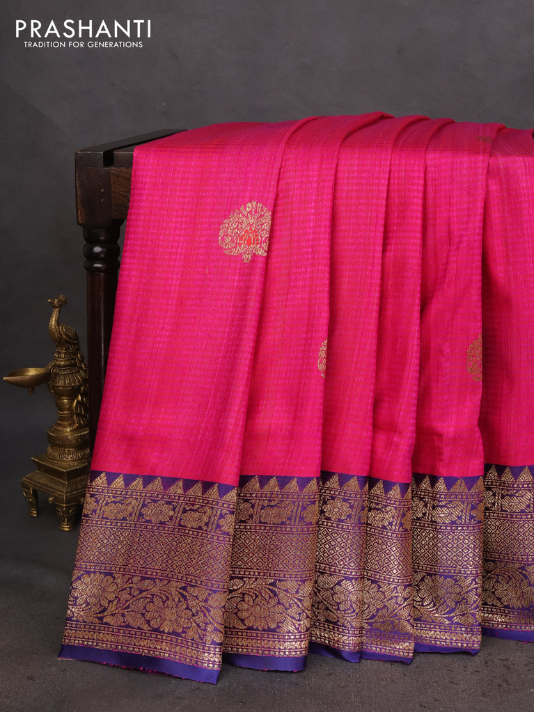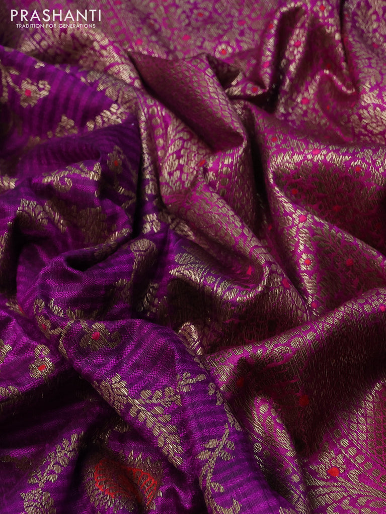 Banarasi handloom dupion silk saree deep violet and purple with allover thread & zari weaves and woven border