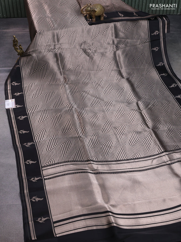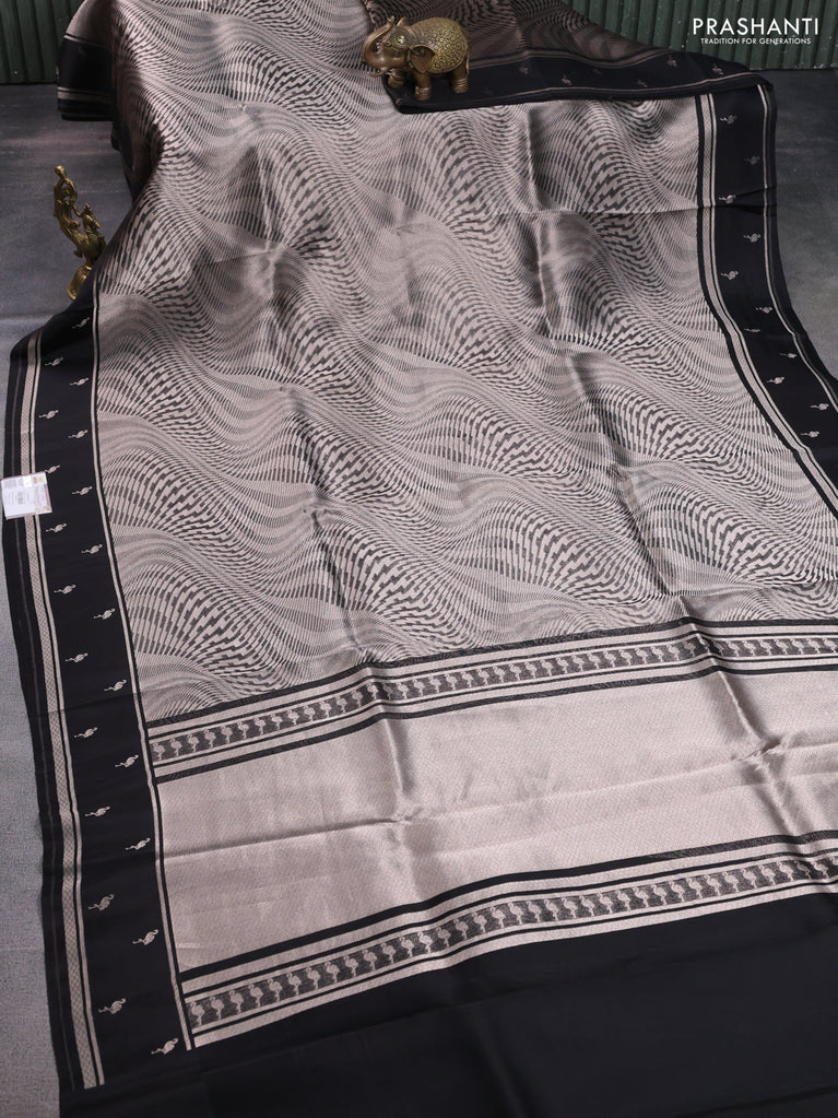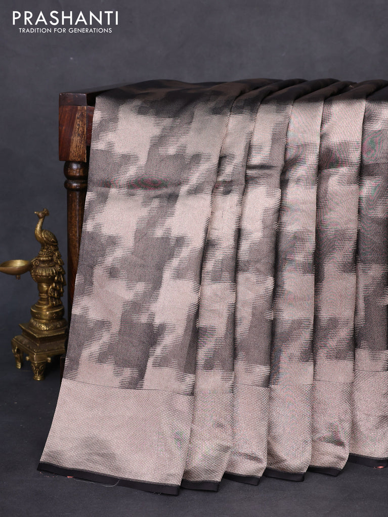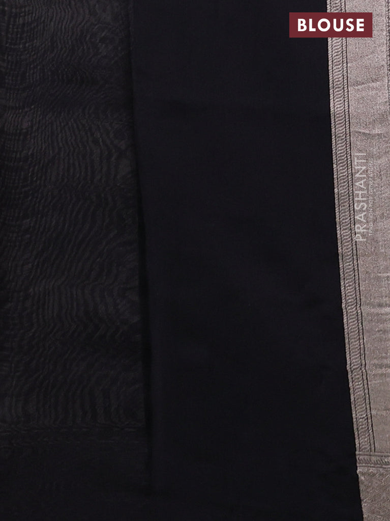 Banarasi katan silk saree black with allover silver zari woven brocade weaves and zari woven butta border