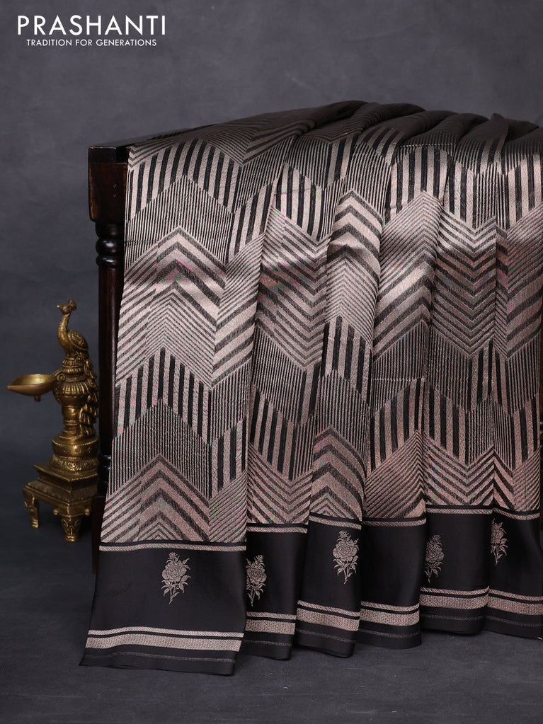 Banarasi katan silk saree black with allover zari woven brocade weaves and zari woven butta border
