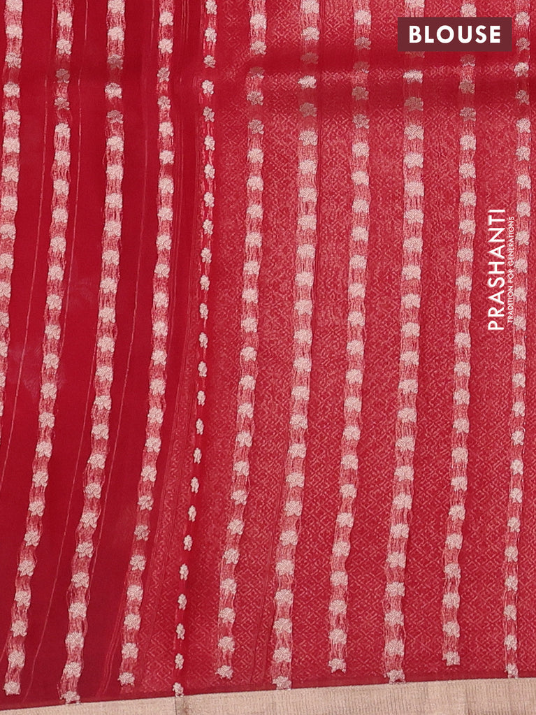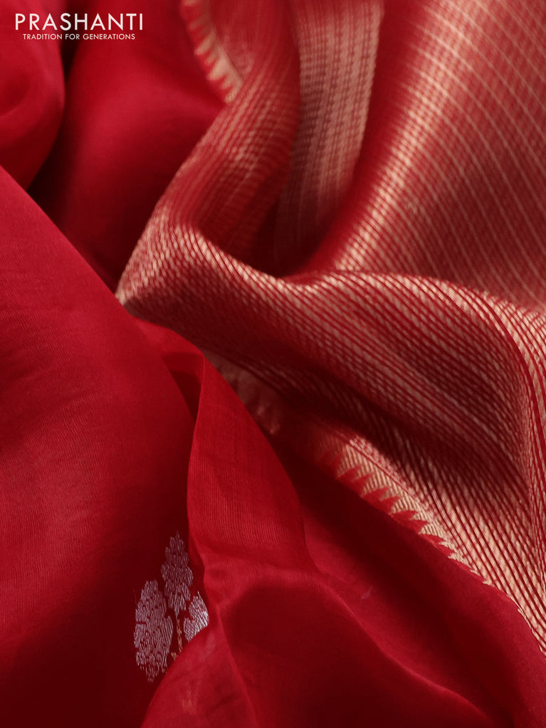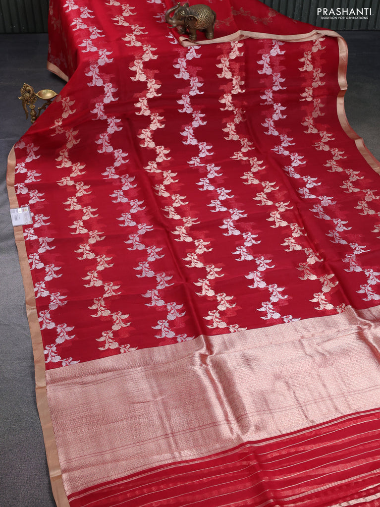 Banarasi organza silk saree red with silver & gold zig zag weaves and zari woven border