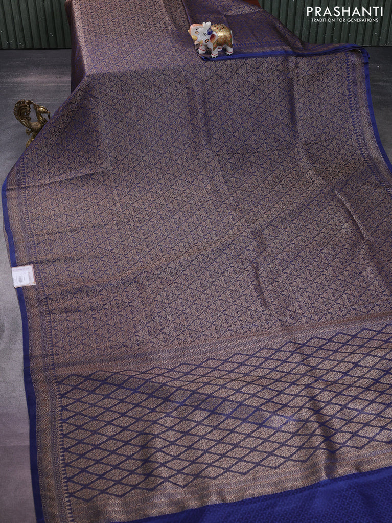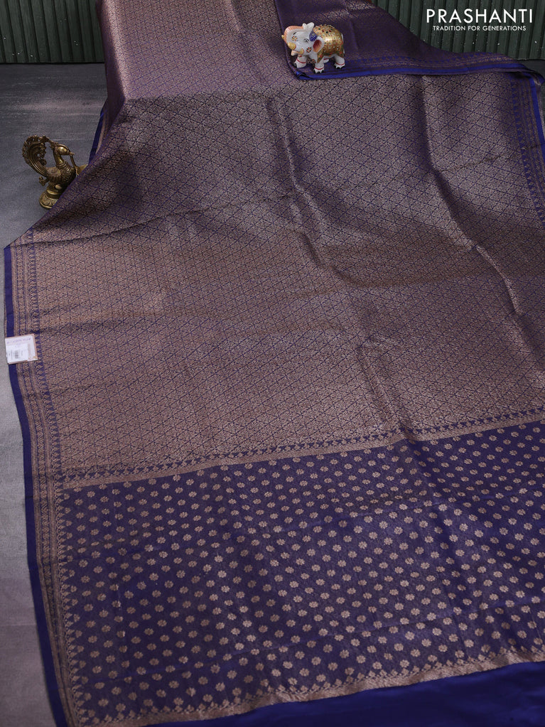 Banarasi semi crepe saree blue with allover thread & zari woven brocade weaves and woven border