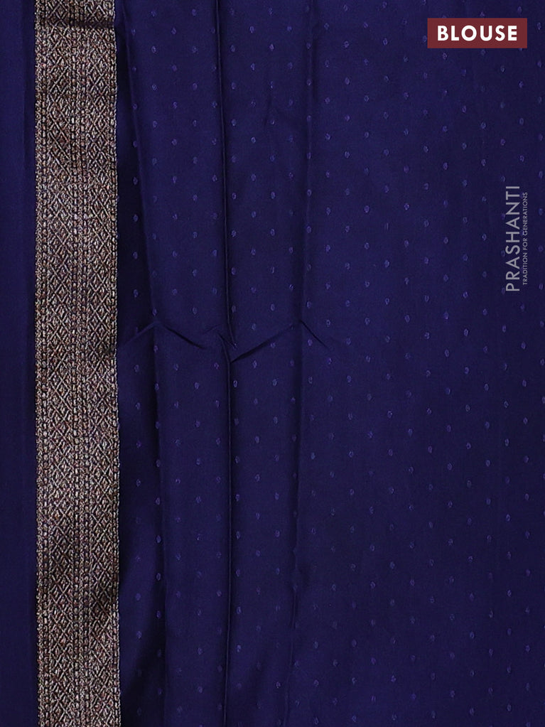 Banarasi raw silk saree navy blue with allover zari checked pattern and woven border