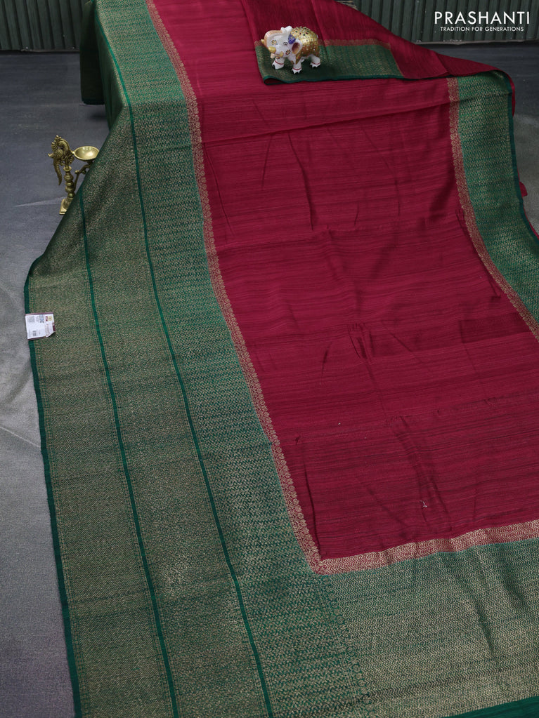 Banarasi raw silk saree maroon and green with plain body and long zari woven border
