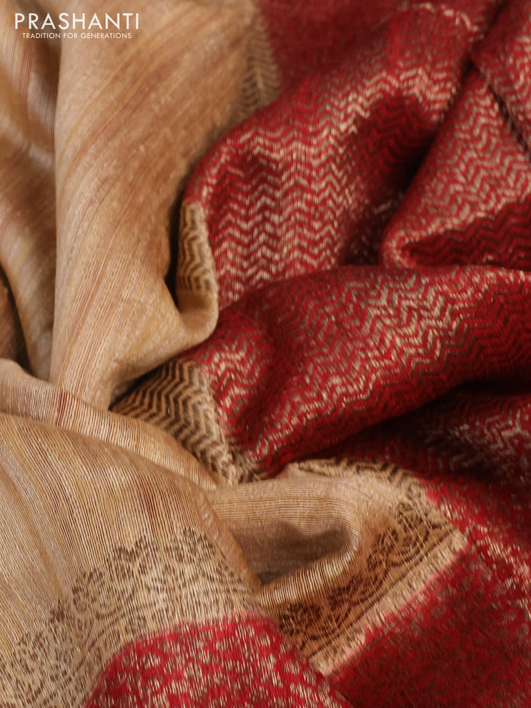 Banarasi raw silk saree sandal and maroon with plain body and long zari woven border