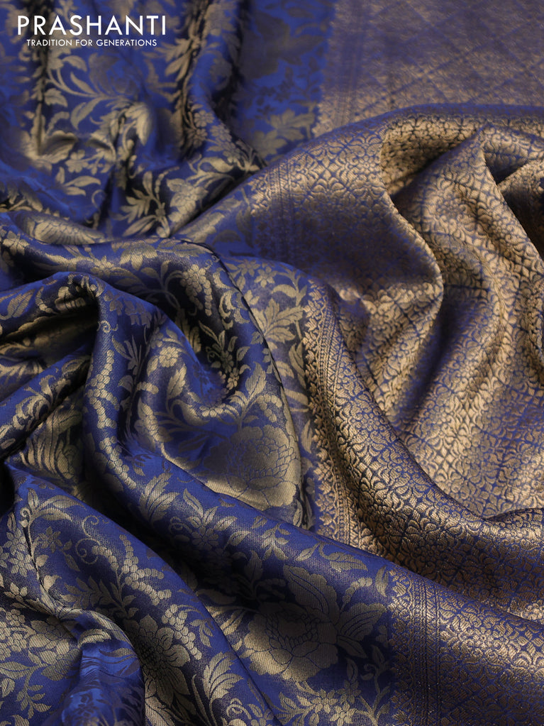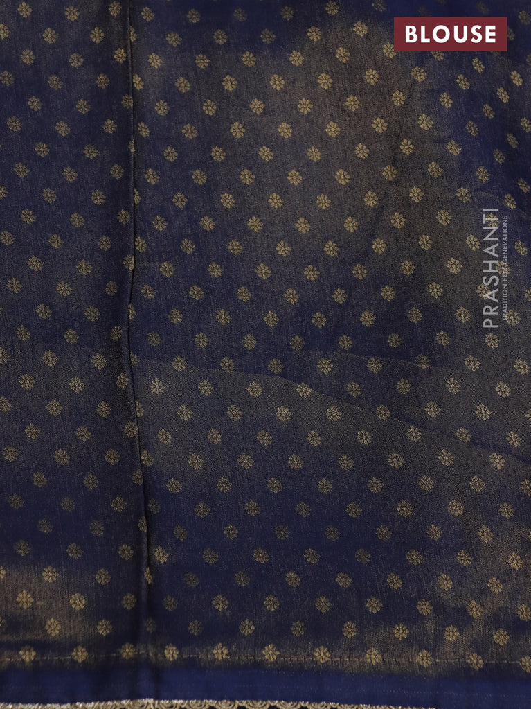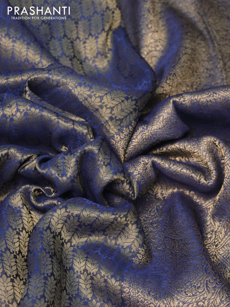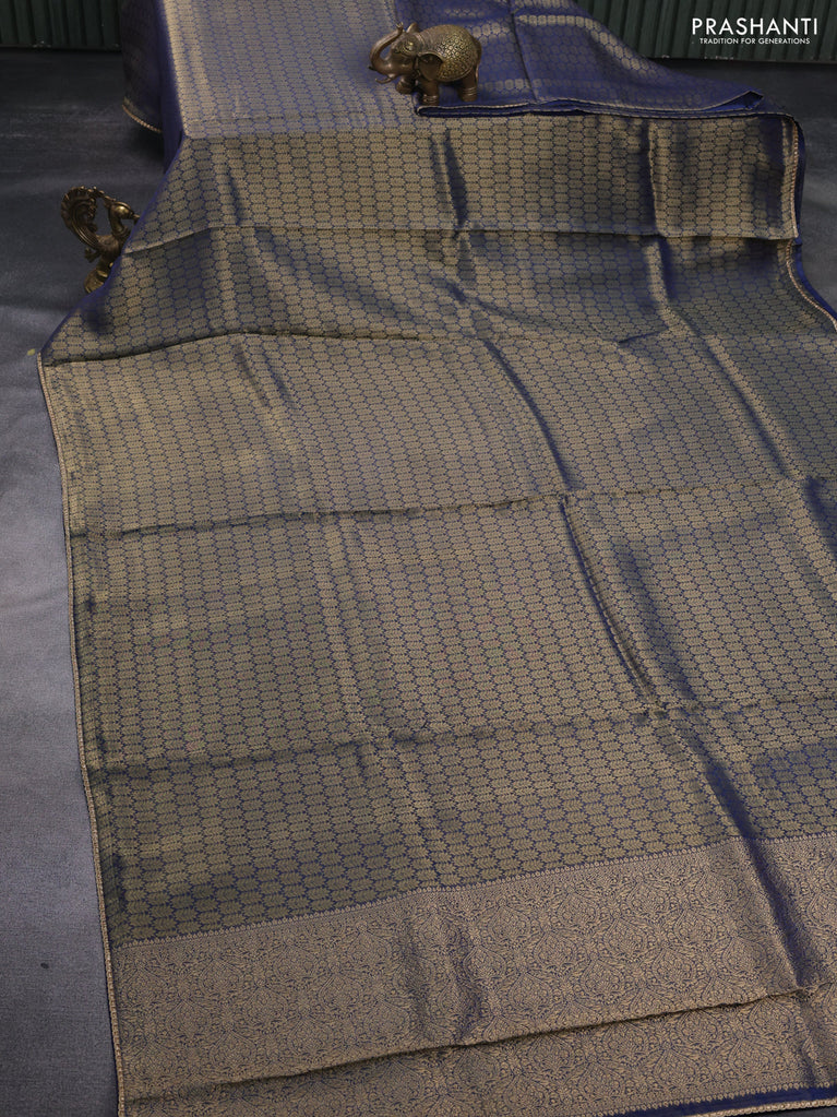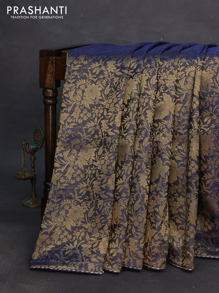 Banarasi semi crepe saree navy blue and teal green with allover zari woven butta weaves and long zari woven border