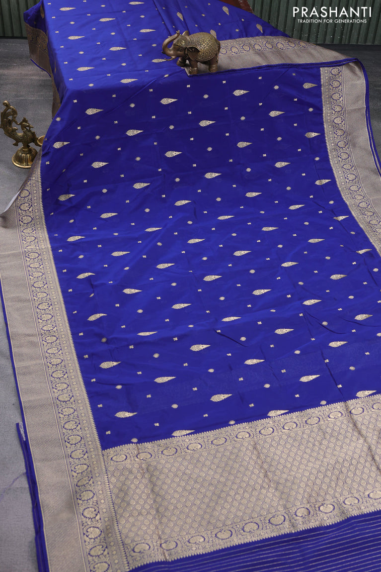 Banarasi semi katan silk saree dark blue with silver zari woven buttas and rich zari woven border